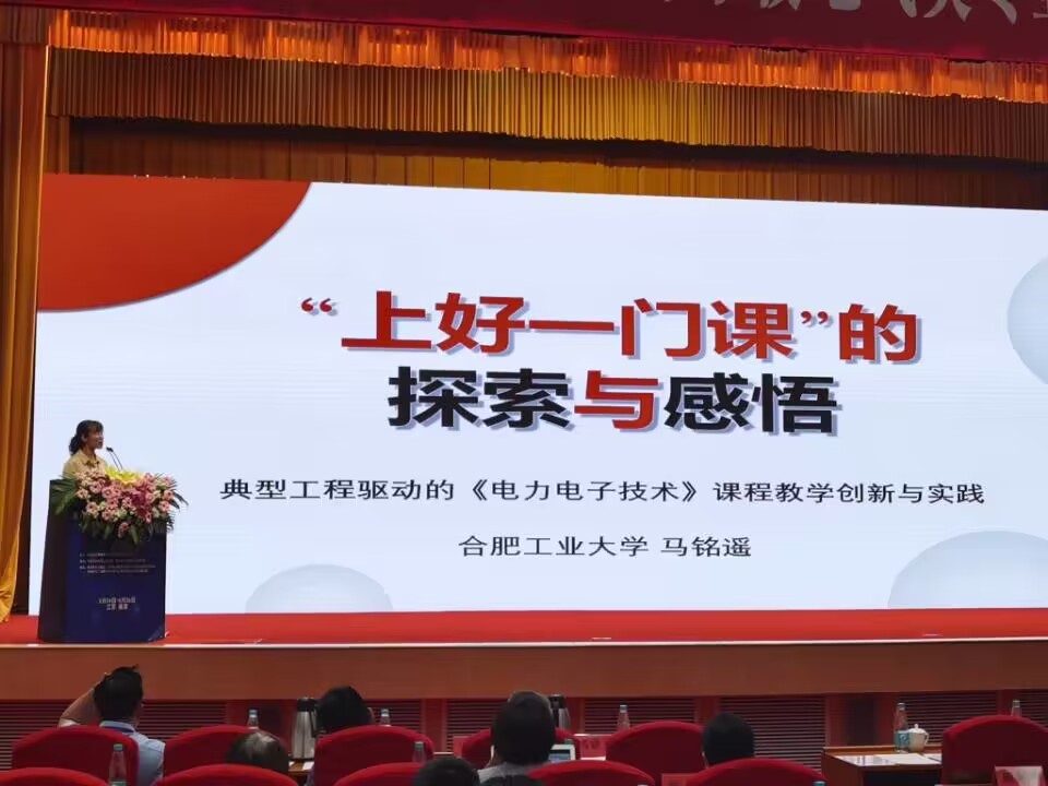 黄海宏副院长带队参加了大会。汪海宁老师作为教育部高等学校电气类专业教学指导委员会主办的首届全国高等电气类青年教师实践教学设计金奖获得者代表上台领奖;马铭遥老师在大会上做了“‘上好一门课’的探索和感悟”的特邀报告;王海欣、黄海宏、汪海宁和张鹏老师提交了教研论文《新型电力电子技术实验教学装置》,在分组讨论中与其他参会院校老师进行交流探讨,宣传工口实验室