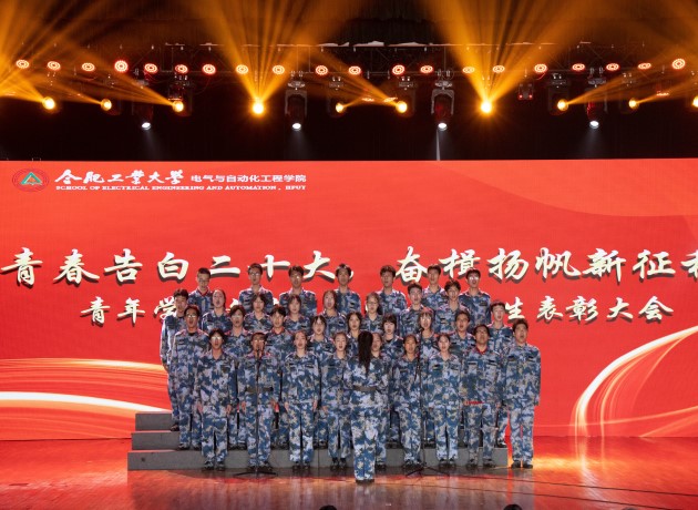5月17日,电气与自动化工程学院“青春告白二十大,奋楫扬帆新征程”青年学生文艺展演暨优秀学生表彰大会在屯溪路校区斛兵礼堂举行。党委学生工作部部长钟小要、校团委书记武国剑、校友会办公室副主任王成山、学院领导班子成员、辅导员和全体2022级本科生齐聚一堂,观看展演。