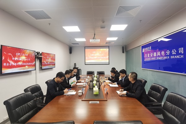 邱先佳对学校一行来访表示热烈欢迎,并介绍了公司的整体发展情况和校企合作愿景。他表示,公司高度重视与科研院校的合作,希望能有更多的优秀工大学子加入华能,共同推进校企人才培养质量再上新台阶。学生就业指导中心主任叶绍灿对华能安徽风电分公司对学校的支持表示感谢,介绍了学校人才培养、学生就业情况以及访企拓岗活动背景和校企合作期许,希望双方能够以此次活动为契机,深化产教融合,加强校企合作,构建校企协同育人机制,拓宽合作渠道,共同培育适应国家和社会需求的高质量人才,促进学生高质量就业。电气与自动化工程学院党委副书记兼纪委书记李丽鹏表示,希望学院能与华能集团在专业认知实习、毕业实习、就业实习等方面加强合作,大力提升学生行业认知和专业素养,共同努力培养优秀学子,实现校企双赢,共同发展。