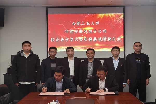 2022年招生宣传片和中国华能集团安徽风电分公司宣传片,李丽鹏与副总经理郭海全代表校企双方签署《工口实验室