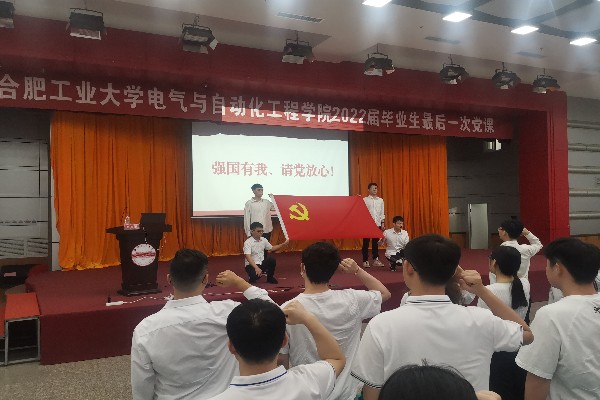 为做好学院2022届毕业生党员的教育和管理工作,教育引导毕业生党员坚定理想信念,牢记初心使命,勇于担当作为。6月8日上午,电气与自动化工程学院“奋斗,青春最高的礼赞”最后一次党课在东风报告厅举行,学院党委副书记兼纪委书记李丽鹏、毕业班辅导员及全体本科生、研究生毕业生党员参加活动。