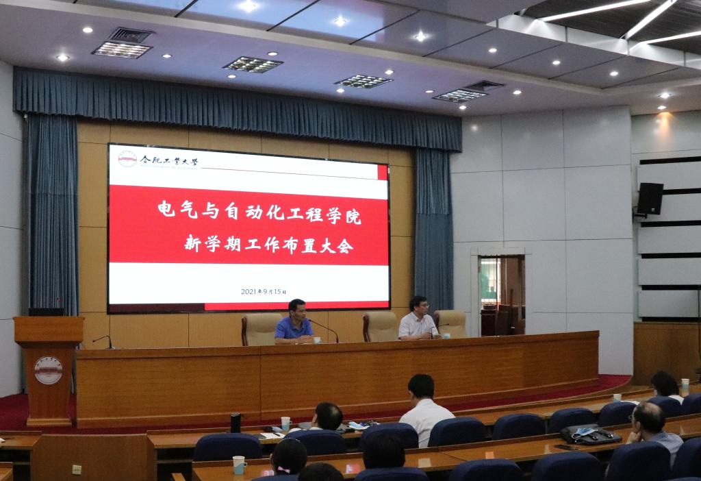 9月15日下午,电气与自动化工程学院在屯溪路校区学术会议中心大报告厅召开了2021年下半年新学期学院工作布置会。党委书记何岳颀主持会议,学院领导班子成员及全院教职员工参加了会议。