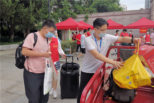 在工作人员的指引下,入学新生依次通过体温测量、更换口罩、查验三码(安康码、行程码、入校码)、行李消毒、学院报到、宿舍核验等多个环节。建立多重保障,严抓疫情防控,确保师生安全。