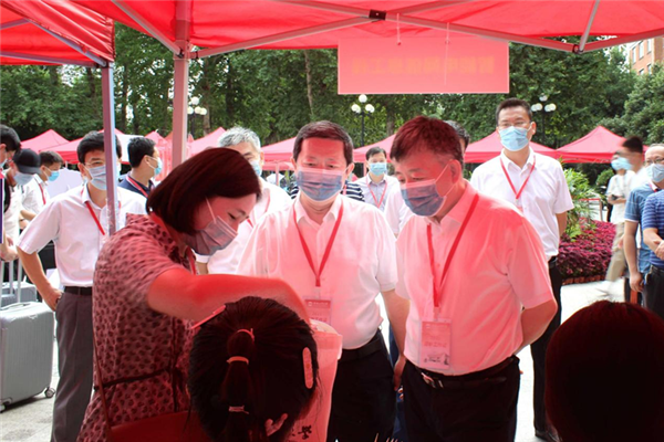 当天上午,校长梁樑,校党委副书记陈刚,校党委常委、副校长刘晓平,院长丁立健、院党委书记何岳颀到迎新现场检查指导迎新工作,看望报到新生,慰问参加迎新工作的师生员工,学院党委副书记、纪委书记郑洁向校领导简要汇报了学院今年迎新工作具体安排、返校学生信息、疫情防控等情况,特别介绍了专门为新生精心准备的入学暖心礼包。