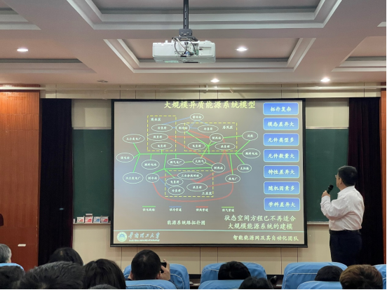 在报告会上,吴青华教授介绍了新型电力系统中配电网的变化及带来的挑战、如何提高城市配电网安全可靠性、如何利用新能源的发展结合通讯技术和人工智能技术构建更可靠及优化的电力系统等相关问题,并分析了大规模异质能源系统模型。最后吴青华教授介绍了华南理工大学能源研究院的基本情况与相关科研成果。
