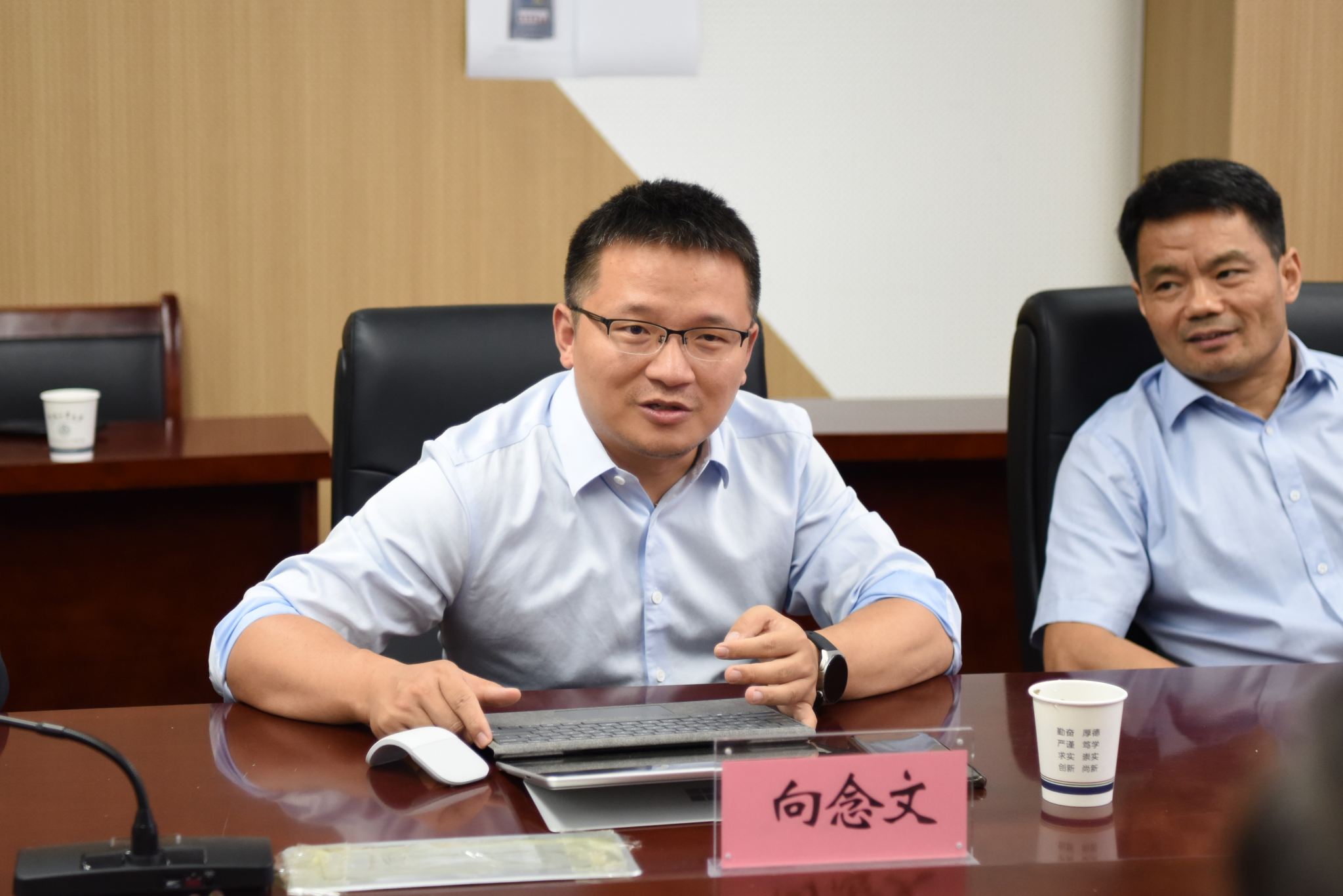会上,向念文对王静峰、王东坡一行的到来表示热烈欢迎,并介绍了工口实验室