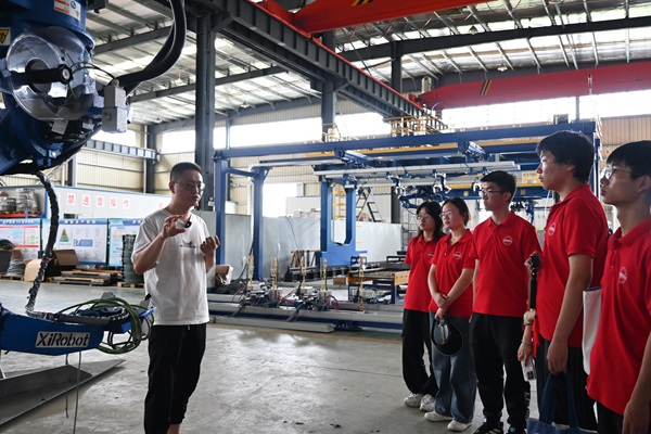 领航,智研人机创未来。7月4日至9日,学院“机语同行”机器人行业发展现状调研团队先后赶往合肥市和芜湖市,赴合滨智能机器人有限公司、合肥中科深谷科技发展有限公司、中国科学院合肥物质科学研究院智能机械研究所、芜湖清能德创电子技术有限公司、埃夫特智能装备股份有限公司、芜湖藦卡机器人科技有限公司、安徽行健智能制造装备股份有限公司对机器人产业的前沿动态进行调研和交流学习。团队切身感受到《“十四五”机器人产业发展规划》对推动我国机器人产业高质量发展的重要指导意义,深刻体会到科技赋能的强大力量,深入理解了机器人生产对解放人类生产力、提高生产效率的深刻意义,进一步坚定了同学们科技强国、工业报国的信念。