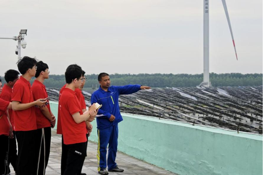 绿动,风电赋能复兴路。7月8日至14日,学院“风光无限,电联未来”暑期“三下乡”社会实践团队赴东台开展新能源企业调研活动,走入风力、光伏企业内部进行参观学习。团队前往上海电气风电设备东台有限公司,近距离观看风机轮毂与传动装置,听讲解员介绍设备的制造流程,学习风力发电基本原理。此外,实践队员前往国华能源投资有限公司江苏分公司、东台双创新能源开发有限公司等地,向技术人员了解风力发电的发展现状,学习风电发电场的建设技术与施工难点,领会风力发电蓬勃发展的时代意义。
