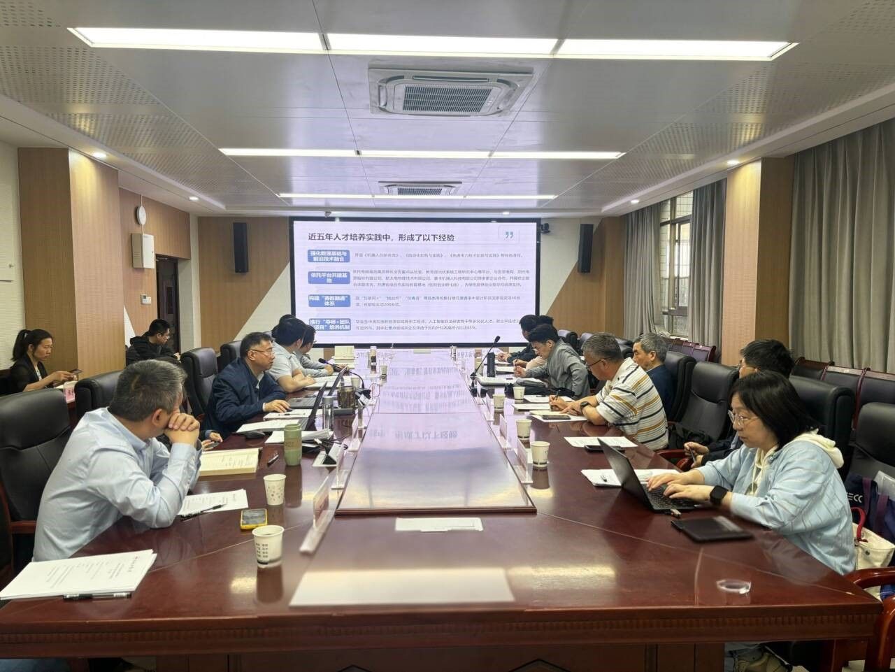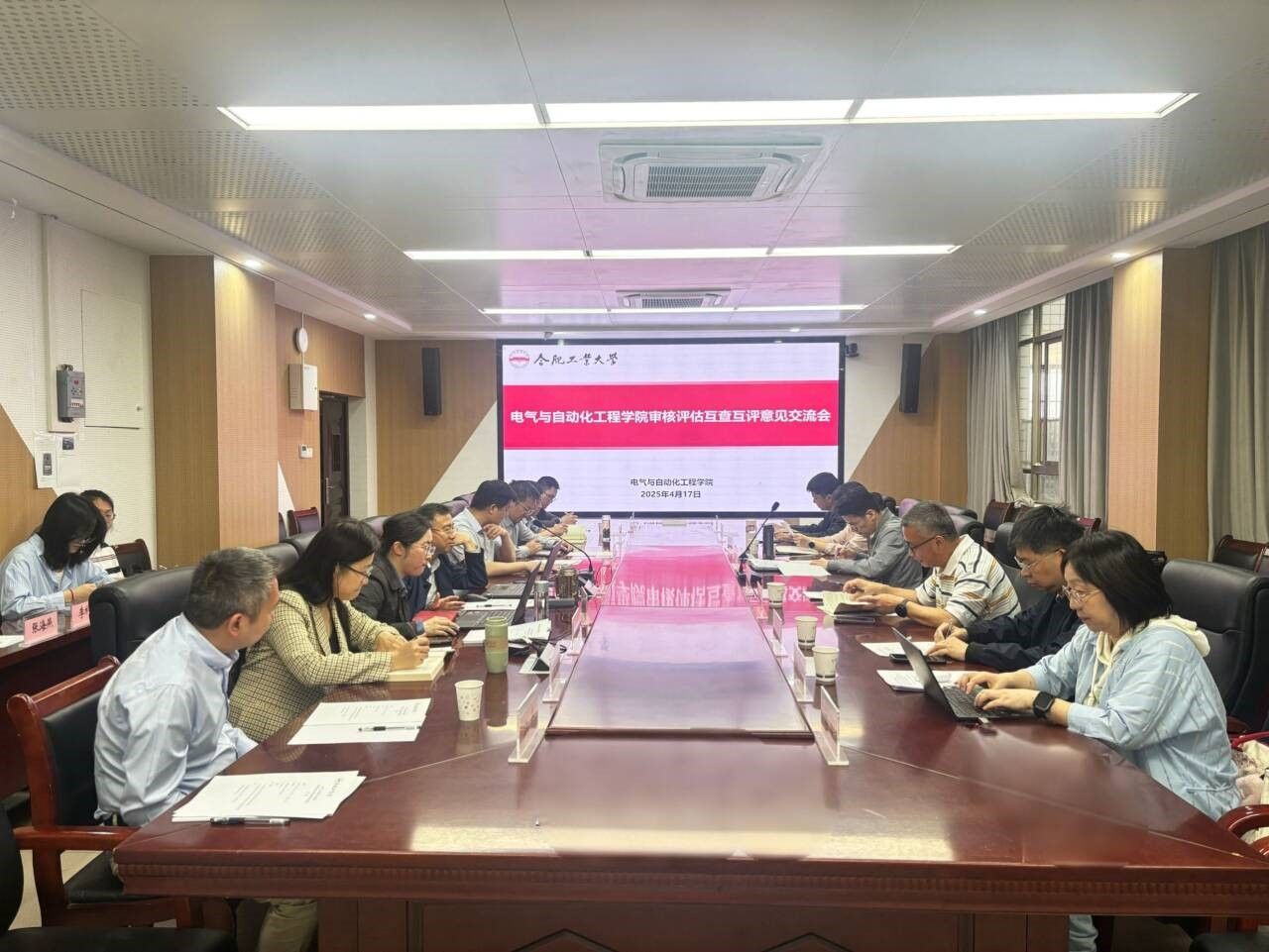 会议开始,副院长黄海宏代表学院对互评互查工作组的到来表示热烈欢迎,并汇报评建改情况及示范案例内容。随后,计算机学院副院长夏娜重点强调了电气学院教育教学亮点之处及待改进之处。教务处于处长发表讲话,感谢电气学院一直以来对教学的坚守,希望学院教师找准审核评估的关键意义,将审核评估作为教育教学的前进动力,加强对持续改进的认识,做好整体布局和教师个体管理之间的衔接关系,此外坚持成果导向,借助特色案例为申报教学成果奖做准备。最后学院院长及书记再次对计算机学院一行来院交流指导表示衷心的感谢。
