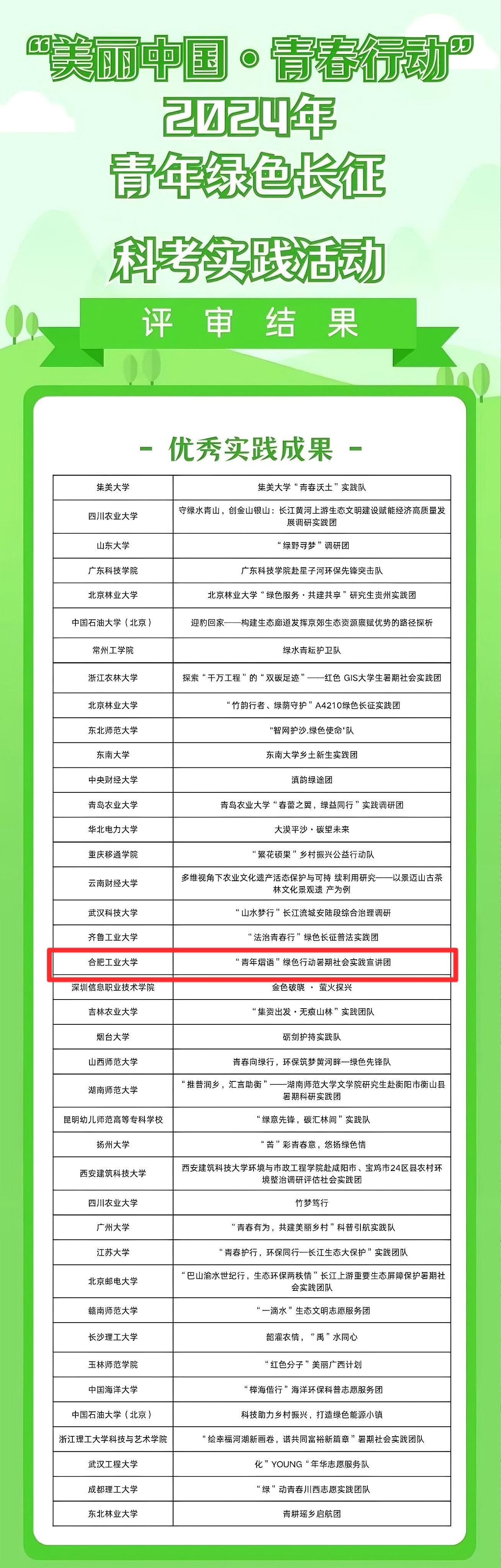 “青年熠语”绿色行动暑期社会实践宣讲团成为安徽省唯一入选的团队。