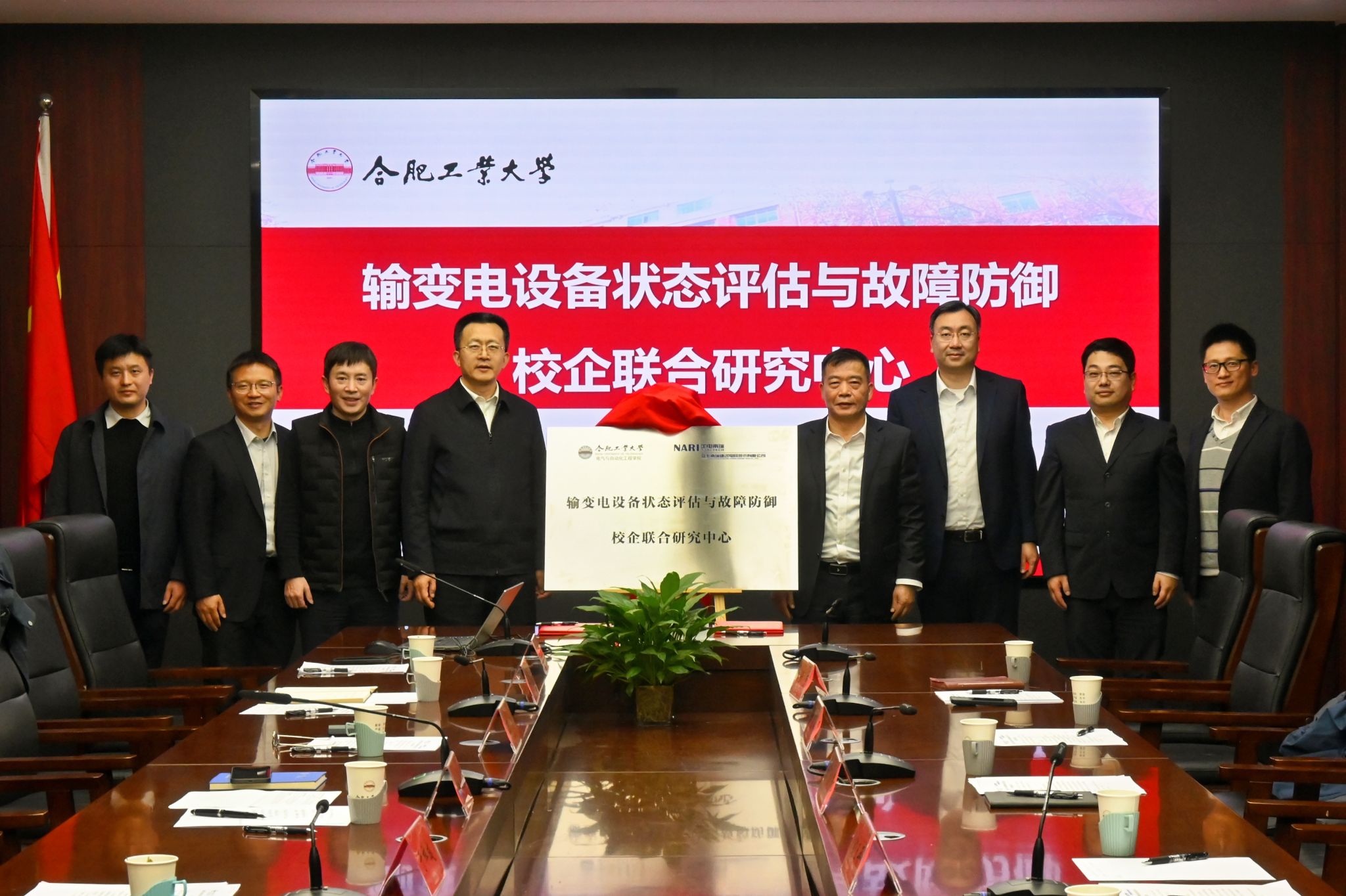 安徽南瑞继远电网技术有限公司董事、党委书记李翔与电气与自动化工程学院院长向念文代表双方签署合作协议,郑玉平与于祥成共同为联合研究中心揭牌。
