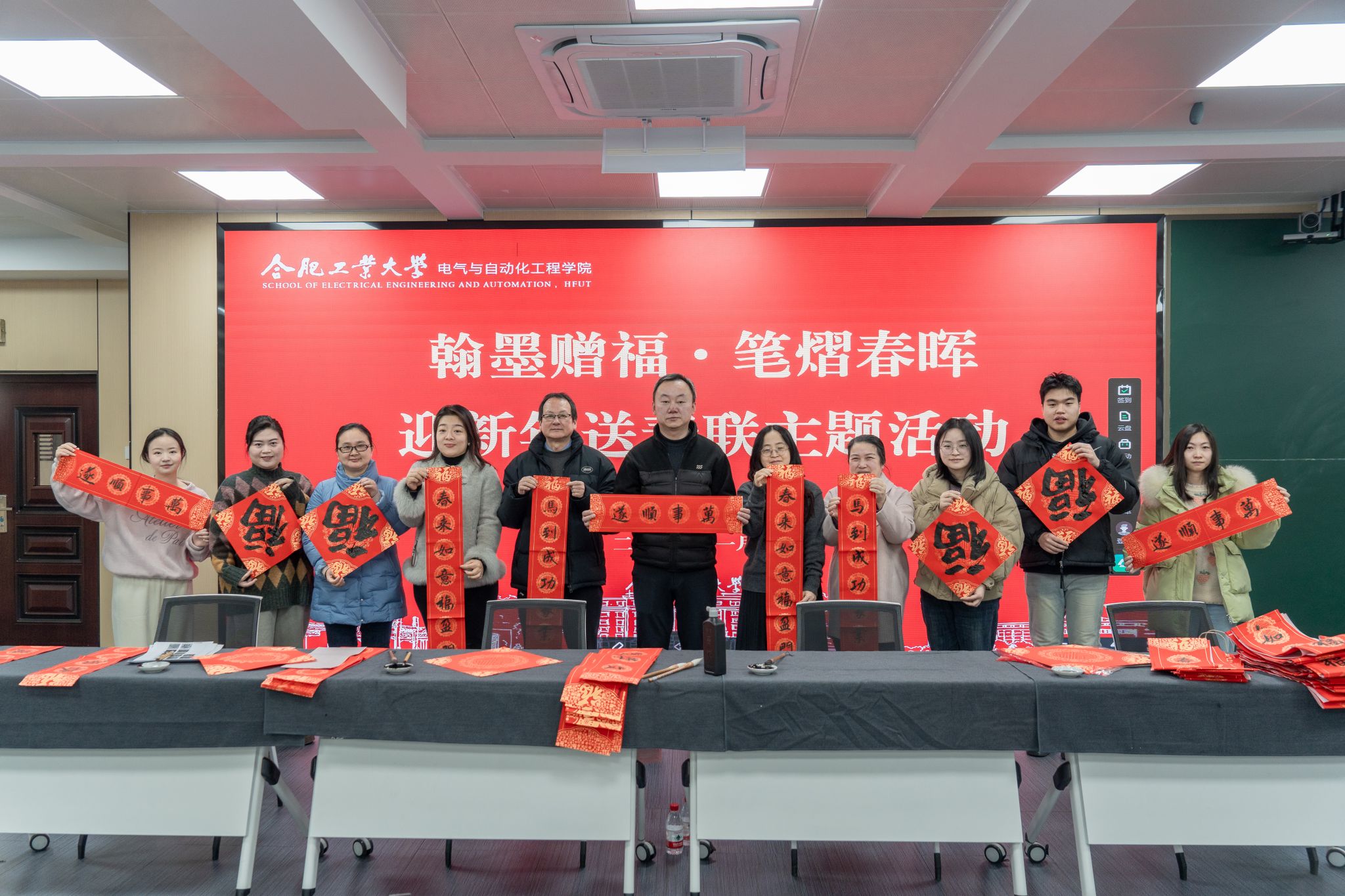 翰墨迎春启新岁,福联寄意贺新程。1月23日,电气与自动化工程学院在逸夫楼1005会议室举办“翰墨迎春,福满电院”送春联活动。教师代表、大学生书画协会学生代表,为全院教职工现场书写春联、定制福字。