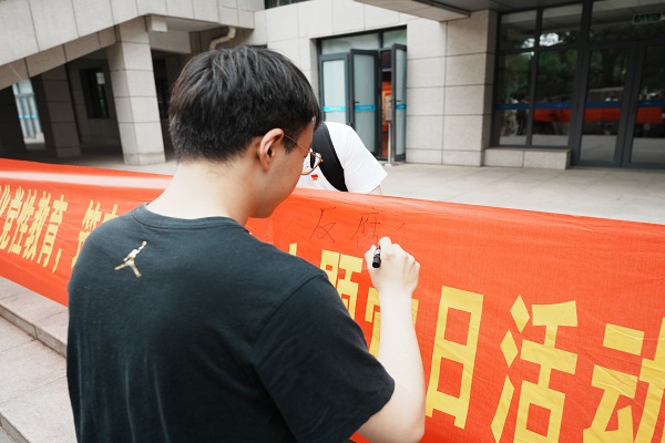 在横幅上书写原创“清风在心”廉洁标语