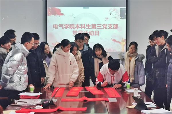 电气学院本科生第三党支部开展“挥毫泼墨凝正气,廉洁春联迎新春”主题党日活动