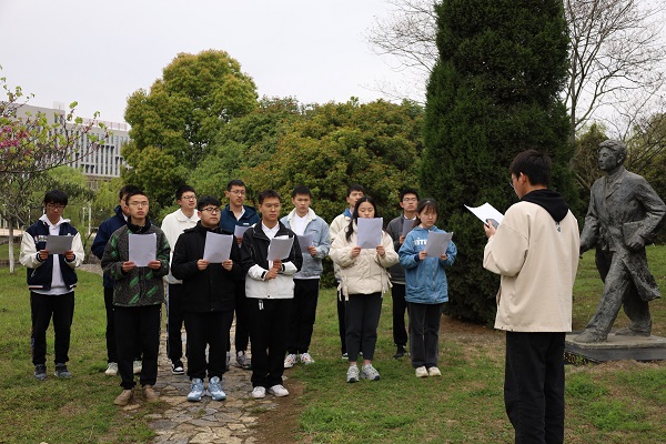 4月5日,电气与自动化工程学院于翡翠湖校区陈秋华烈士雕塑前开展“缅怀英烈砺斗志,传承工业报国情”诵读学传主题实践,“晨”遇经典思政早点坊学员参加活动。