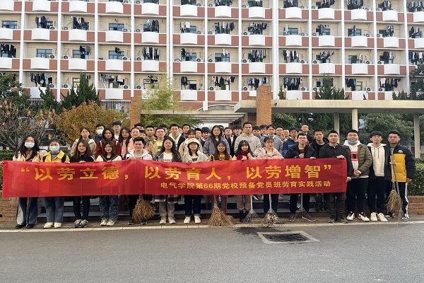 电气与自动化工程学院第66期预备党员班学员在19级辅导员李伟康的带领下,开展主题为“以劳立德,以劳育人,以劳增智”的劳育实践活动,于工口实验室