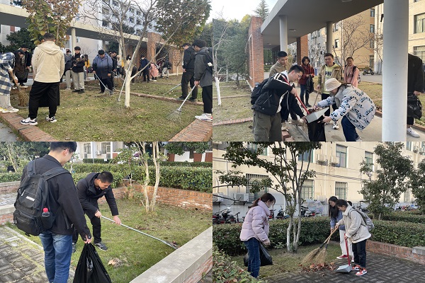 屯溪路校区一号楼旧址清理杂草和落叶。
