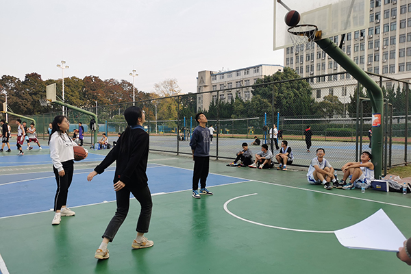 中场投篮伊始,队员迅速进入状态,投球动作潇洒,帅气利索。最终7班女生投进8球,获得16分;39班队员投进2球,为球队再添4分。上半场比分来到29:17。
