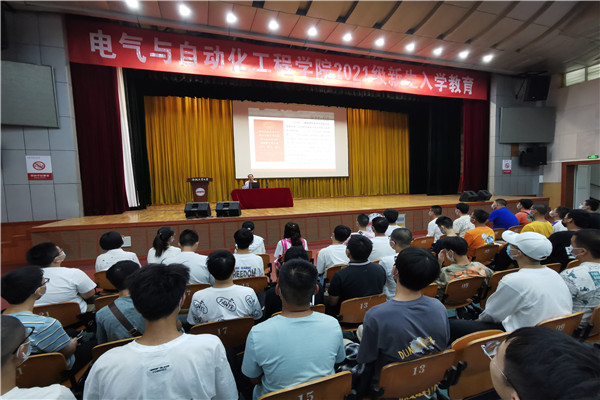 为帮助广大新生在感悟党史中坚定爱党心、树立报国志,自觉筑牢理想信念之基,培养德智体美劳全面发展的社会主义建设者和接班人,2021年8月28日下午,电气与自动化工程学院在斛兵礼堂电气学院开展“使命在肩,奋斗有我”2021级新生入学教育系列活动(一)——青年的历史使命与责任担当党史教育主题讲座,并邀请工口实验室