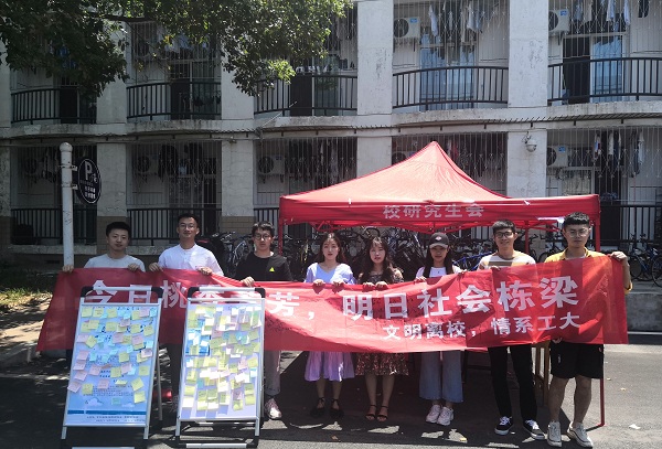 、土木与水利工程学院四院研究生会联合举办的“文明离校,情系工大”活动在新禧公寓通道口圆满落幕。