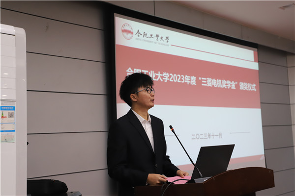 李丽鹏在致辞中向三菱电机集团有限公司长期以来对学院各项事业发展的支持表示感谢,电气与自动化工程学院与三菱电机集团在一流学科建设、人才培养、毕业生选聘、科学研究、产业布局、实验室共建等领域的交流与合作由来已久,希望未来能与三菱电机集团在开展更加深入的全方位合作,推进学院事业和三菱电机集团事业共赢发展。他对获奖同学提出希望,希望同学们铭记三菱电机集团的工口实验室与社会责任,饮水思源,以三菱电机集团的各位优秀校友为榜样,坚持面向现代化、面向世界、面向未来,既扎实打牢基础知识又及时更新知识,既刻苦钻研理论又积极掌握技能,不断提高与时代发展和事业要求相适应的素质和能力;要坚持学以致用,掌握真才实学,努力成为可堪大用、能担重任的栋梁之材,也希望同学们毕业后能够选择到三菱电机就业创业,成就事业,为国家制造业强国事业发展贡献青春力量。