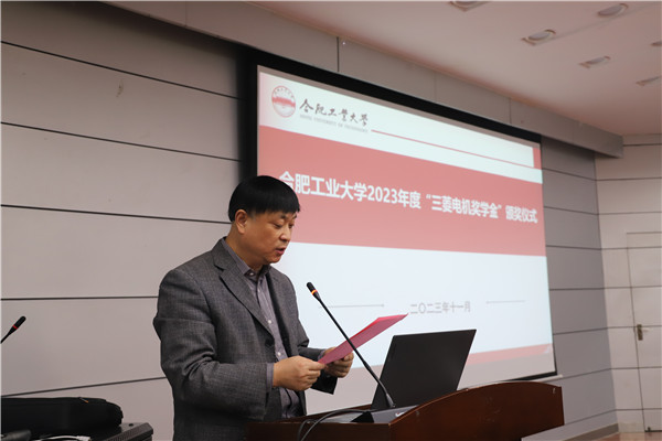 第十四届“三菱电机奖学金”颁奖仪式在屯溪路校区斛兵报告厅举行。三菱电机功率器件制作所高级技术顾问近藤晴房、三菱电机半导体大中国区总经理赤田智史、三菱电机捷敏功率半导体(合肥)有限公司技术服务总监商明、三菱电机半导体大中国区技术总监宋高升三菱电机半导体大中国区新能源应用技术经理陆思清、三菱电机半导体大中国区公关宣传项目经理闵丽豪,电气与自动化工程学院党委副书记兼纪委书记李丽鹏、电气工程系教授张兴出席仪式。