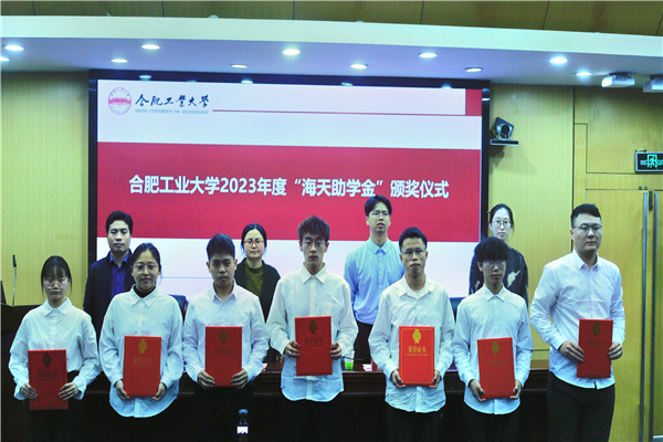 第五届“海天助学金”颁奖仪式在屯溪路校区学术会议中心小报告厅举行。海天塑机集团有限公司人力资源部门负责人、机械工程学院学院党委副书记兼纪委书记蔡伟伟、电气与自动化工程学院党委副书记兼纪委书记李丽鹏出席仪式。