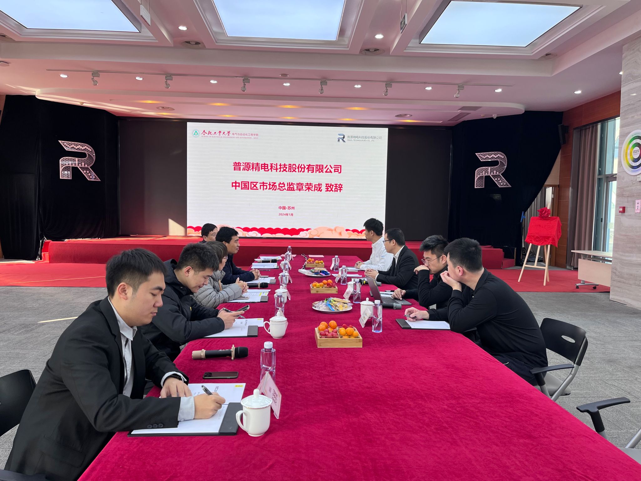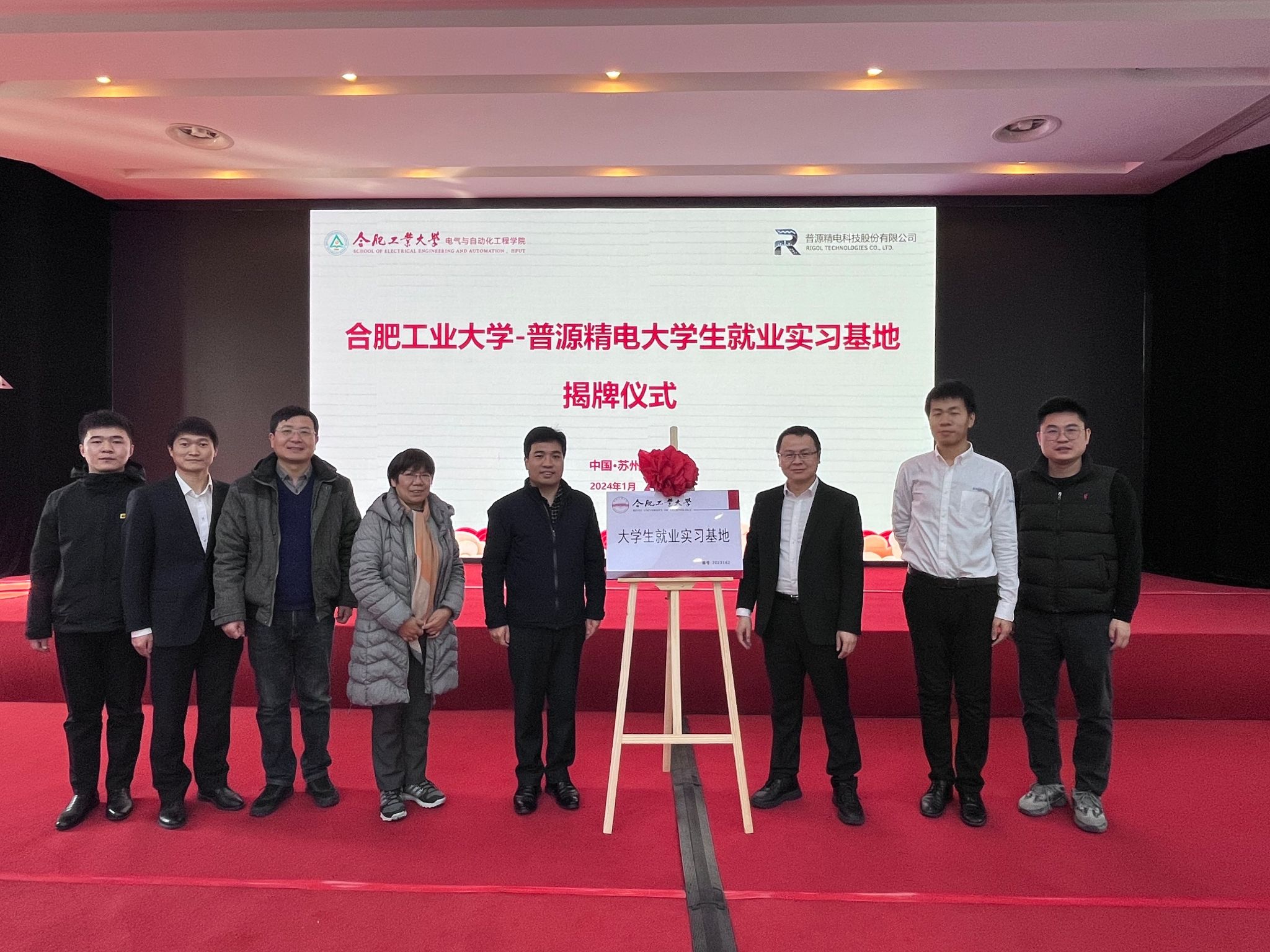大学生就业实践实习基地协议,李丽鹏和章荣成共同为大学生就业实习基地揭牌。双方就科研项目合作、人才招聘、人才培养等方面内容进行深入座谈。最后,学院教师一行参观了普源精电精益工厂。