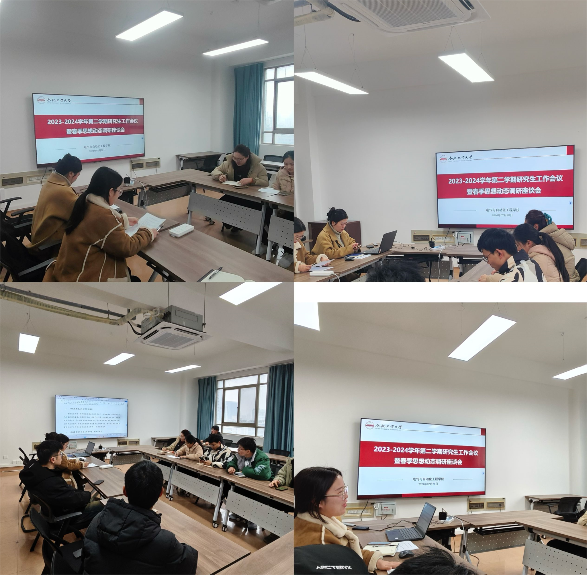 2月28日,电气与自动化工程学院在逸夫楼1008会议室召开2023-2024学年第二学期研究生工作会议暨春季学期思想动态调研会,研究生辅导员及各年级学生骨干参加会议。