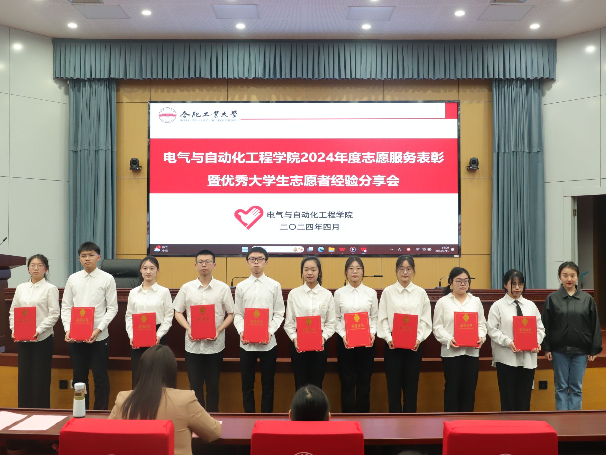 会上,学院学生工作办公室主任兼团委书记刘开阳宣读《关于表彰电气与自动化工程学院2024年度志愿服务先进班级、先进个人的决定》,与会领导老师为获奖的志愿服务先进班级和先进个人颁奖。