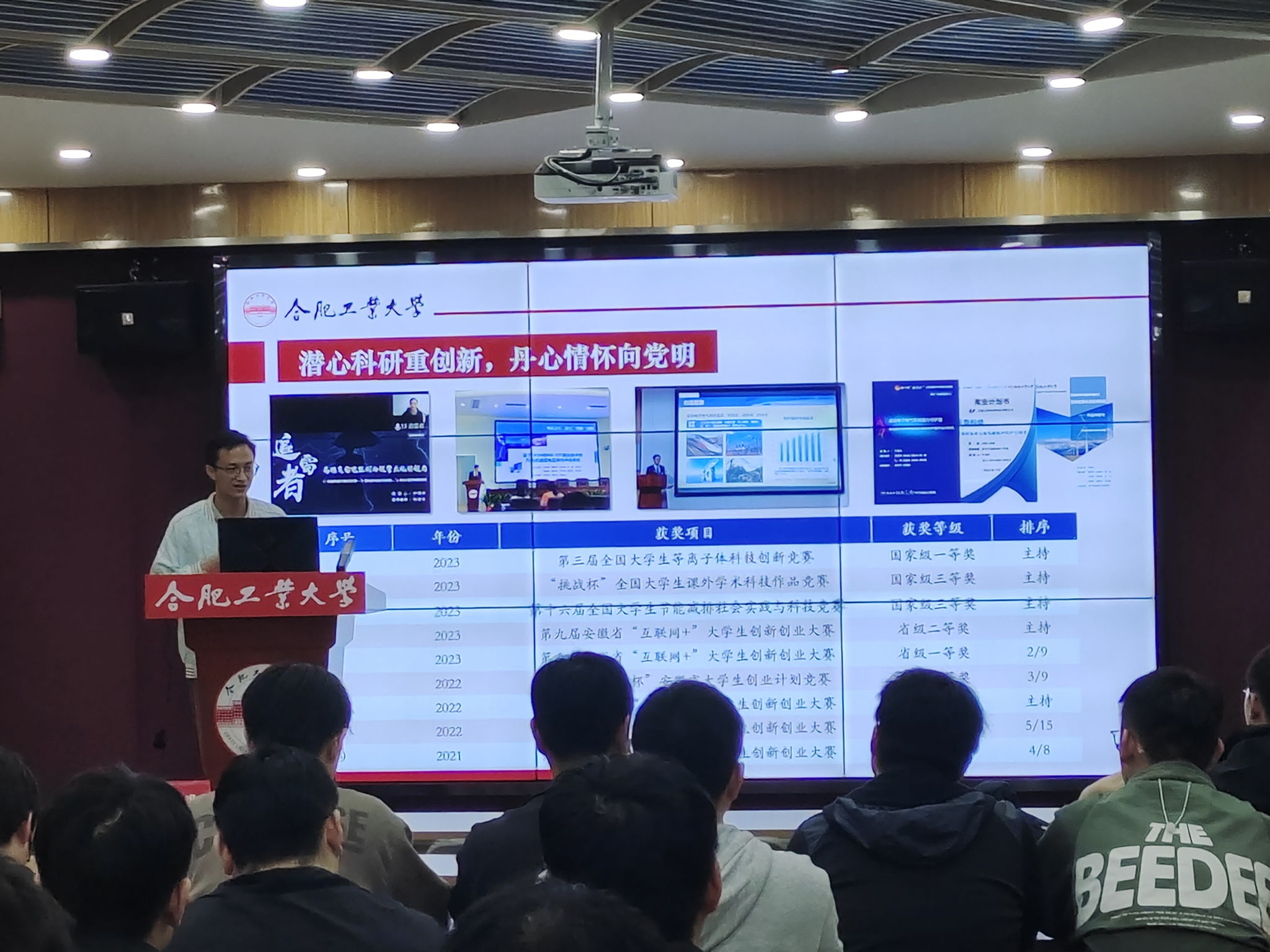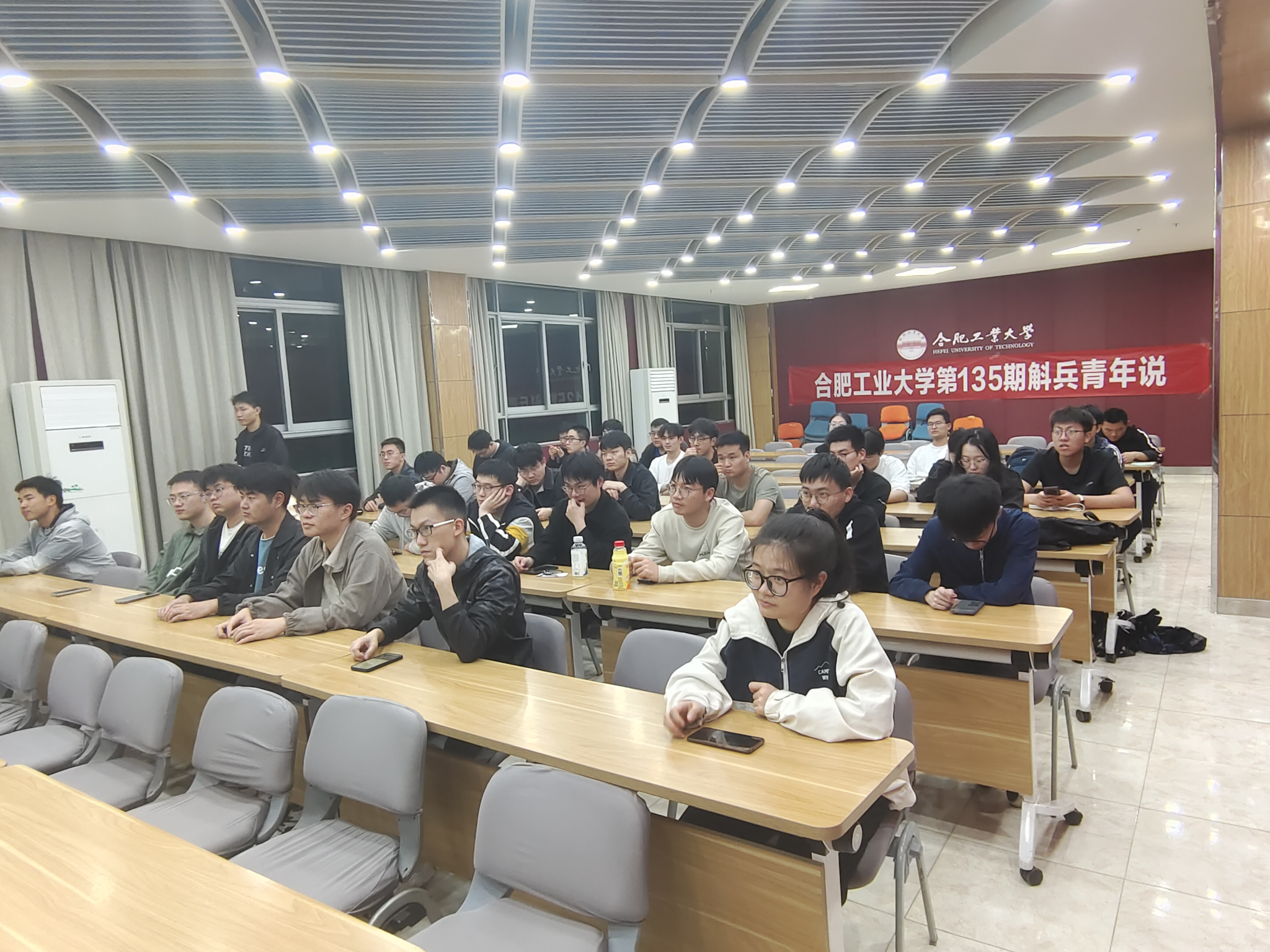 第135期斛兵青年说在在屯溪路校区第一宣讲厅举办,本期斛兵青年说的主题为“索路问向,‘熠’起前行”,活动邀请了电气与自动化工程学院2021级硕士研究生叶寿洪和童倩倩两位同学作成长经验分享,学院60余名研究生积极参与了此次活动。