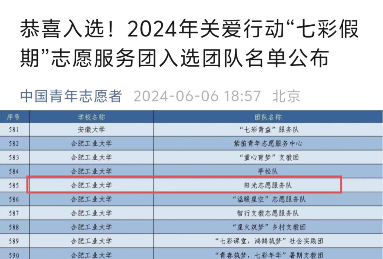 “阳光志愿服务队”成功入选。