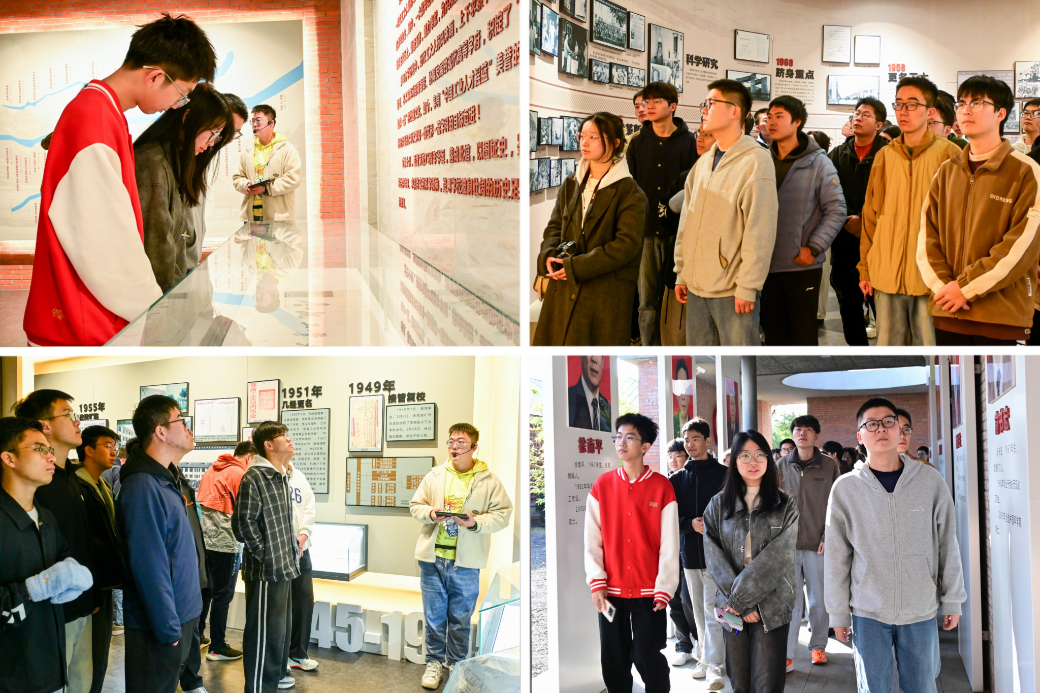 静心品校史,馆内观底蕴。同学们来到时光氛围浓厚的校史馆,在讲解员的带领介绍下,依次参观了学校发展沿革、教学研究成果、校园文化场域、创新创业与人才培养等展览。赭色砖墙映衬出悠悠岁月,历史物件诉说着工口实验室