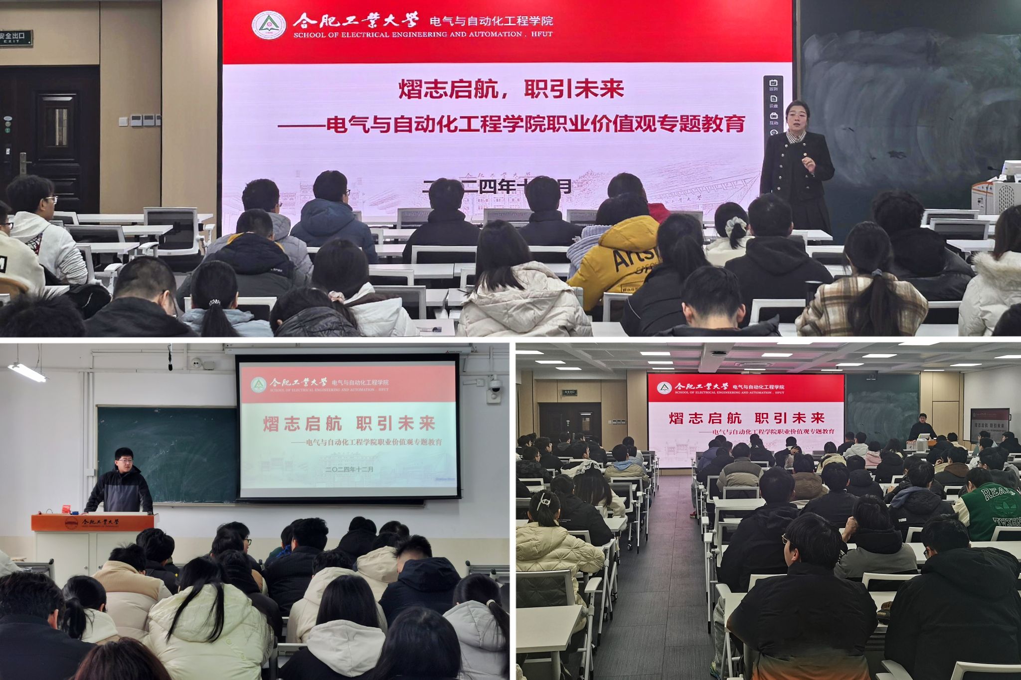 12月下旬,电气与自动化工程学院开展“熠志启航,职引未来”职业价值观专题教育课,学院相关负责老师分批次担任主讲,2025届毕业班全体学生参与学习。