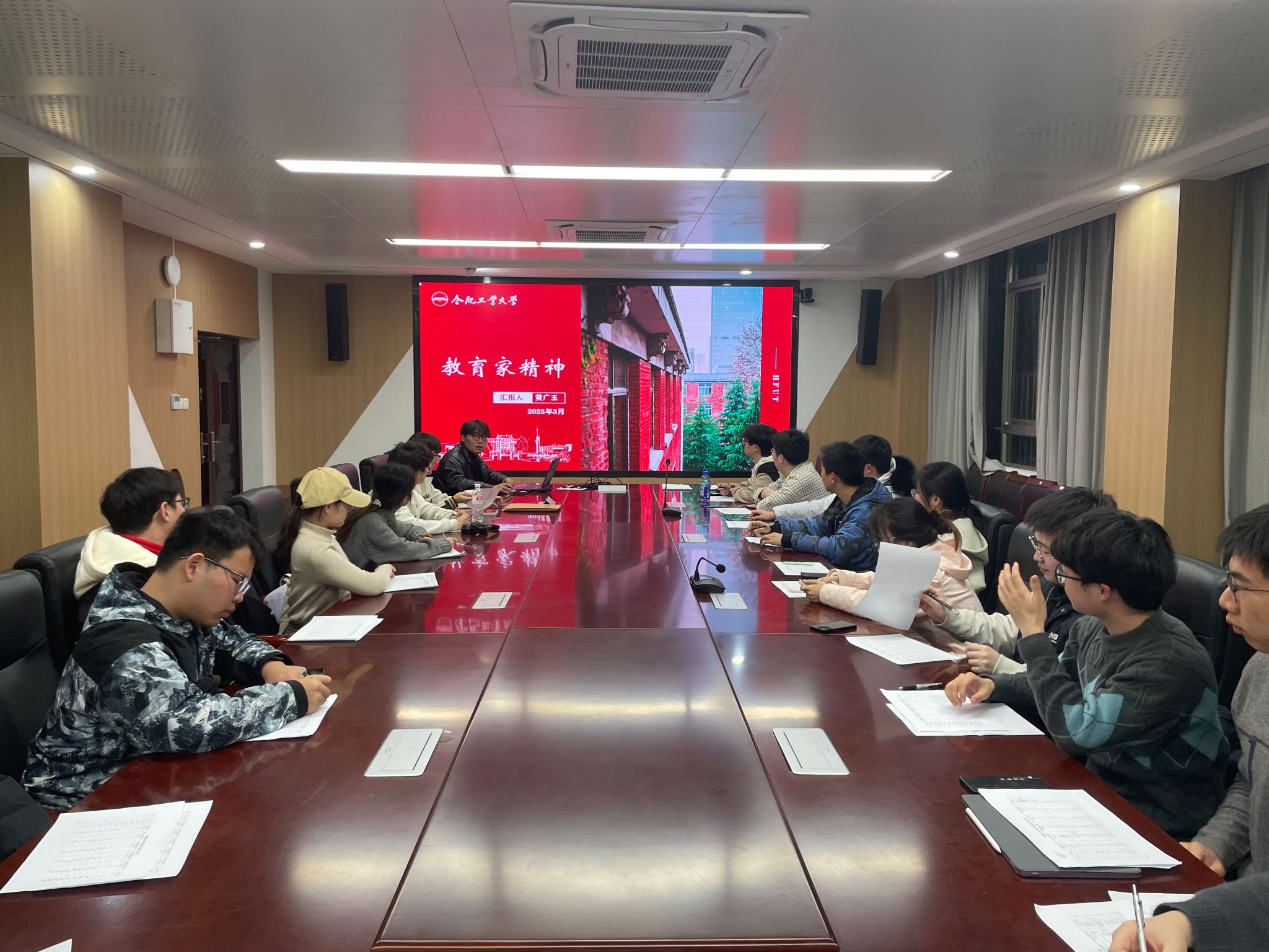 会上,支部成员雷小斌领学2025年全国教育工作会议精神。她谈到,本次会议明确了教育强国建设的年度重点任务,强调要以高质量发展为主线,推动教育科技人才良性循环,深化教育综合改革,加强教师队伍建设,并持续推进教育数字化战略与教育公平。会议特别提出要“以教育家精神铸魂强师”,通过弘扬教育家精神引领新时代教师队伍发展,为教育强国建设注入精神动力。党支部副书记黄广玉结合会议精神与教育家精神,从四个维度分析了当前中国教育发展的关键问题。呼吁全体党员从三方面发力:一是积极参与教育志愿服务,助力教育公平实践;二是关注教育科技创新,推动学科交叉融合;三是发挥党员先锋模范作用,在校园文化建设中弘扬教育家精神。教育引导党员锚定强国有我,聚焦奋斗在我,为书写中国式现代化建设新篇章贡献德才兼备的青年朝气和先锋力量。