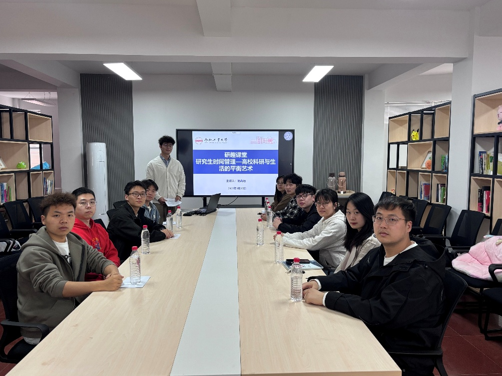 活动伊始,范高远结合自身经验,聚焦研究生时间管理问题,分享了自己平衡科学研究、课程学习与社会实践的方法。针对当前研究生同学普遍面临的时间管理难题,提出了“二八定律”“时间盒法”“生物钟适配”三大路径参考,同时,他认为大家还需要紧跟智能驱动潮流,学会借助时间管理数字工具赋能个人成长。在随后的互动环节,与会同学围绕科研实验周期漫长、论文修改耗时、课程考试压力集中,以及社团活动与学业冲突等现实难题各抒己见,现场气氛热烈。经深入探讨,大家一致认为,合理制定学习计划、高效整合碎片时间、科学建立事务 “轻重缓急” 梯级,是提升工作效率、优化科研效能的关键所在。