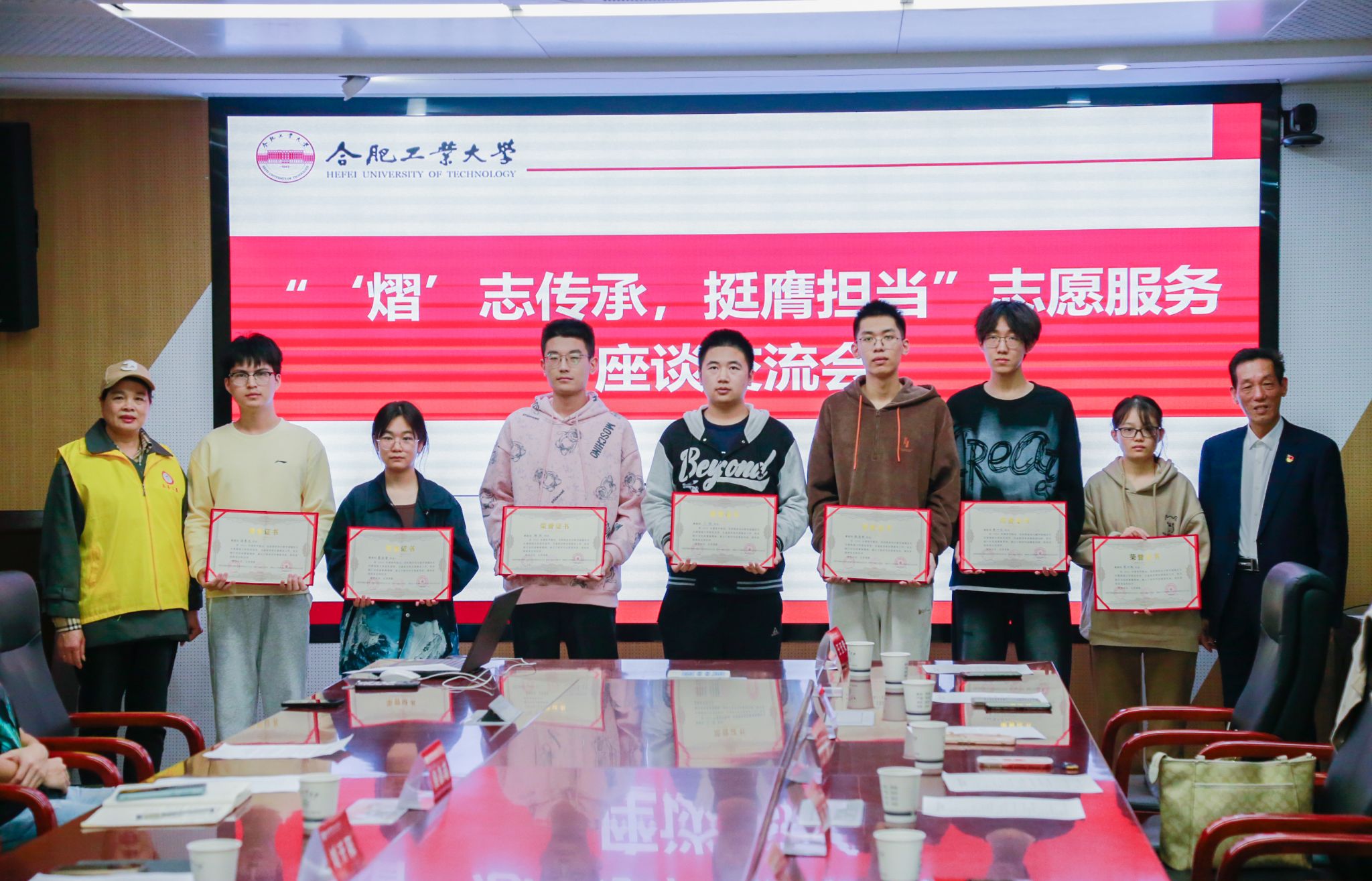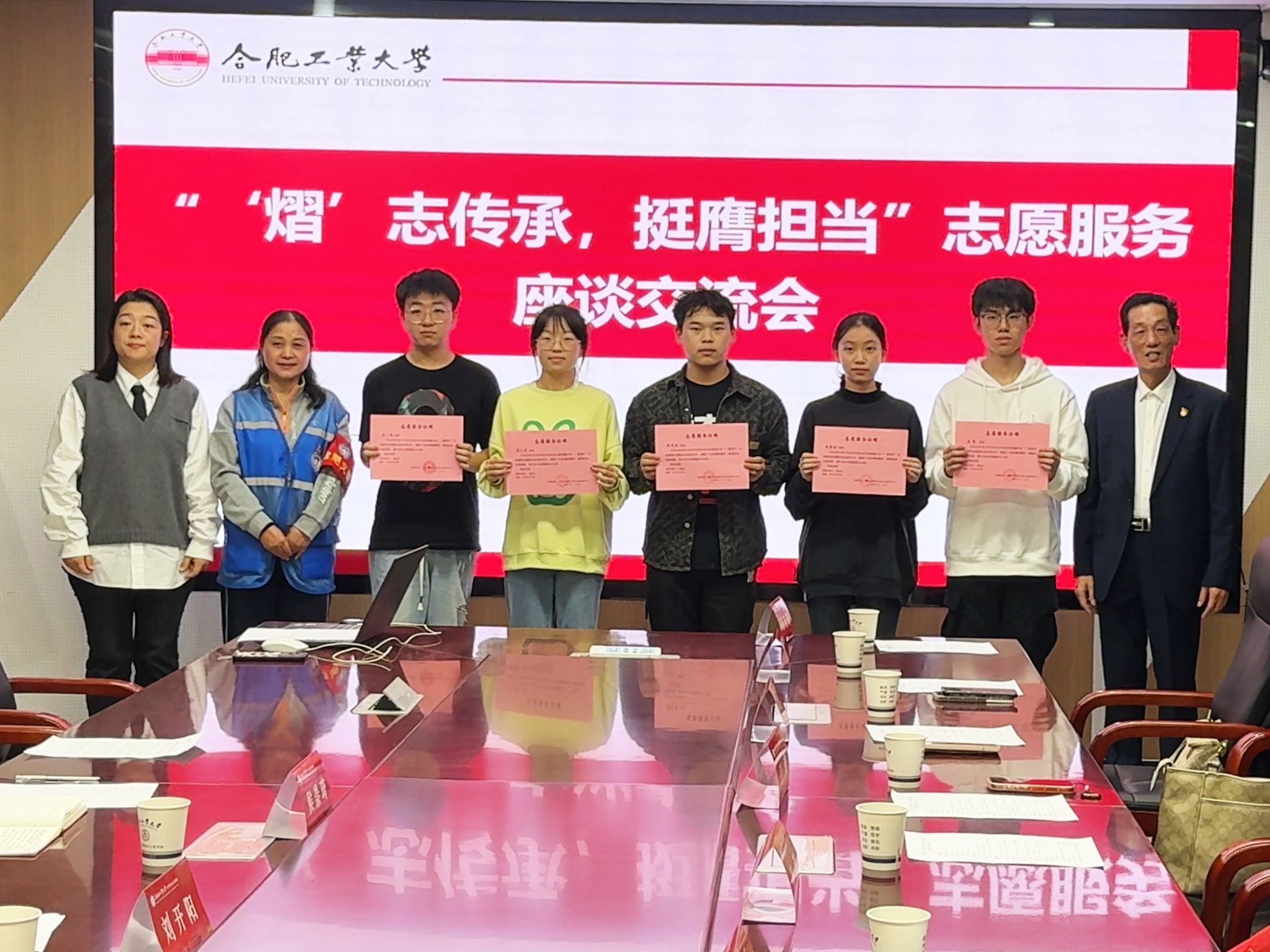 刘开阳对瑶海区乐善公益服务中心志愿者来学院交流表示热烈欢迎,对双方前期开展的志愿服务活动表示充分认可,她介绍了学院志愿服务工作的理念思路、特色品牌、实施成效,学院聚焦“党建带团建,志愿强志向”工作思路,构建学生党支部与基层社区一对一“结对+接力”长效模式,打造“巷约青春,‘熠’启守望”志愿服务品牌,开展丰富多彩的志愿服务活动。希望双方在前期合作基础上加强志愿服务交流合作,为青年学子奉献社会、投身基层搭建广阔平台。乐善公益服务中心丁瑞介绍了双方前期合作开展的志愿服务工作,对服务过程中表现优异的志愿者给予了充分肯定,并为他们制作优秀志愿者荣誉证书,乐善公益服务中心理事长陈余文、合肥市最美志愿者王松芬和刘开阳老师共同为表现优异的志愿者颁发荣誉证书,陈余文代表乐善公益服务中心向学院赠送锦旗,对电气学子参与社区治理,服务社会所需表示充分认可。