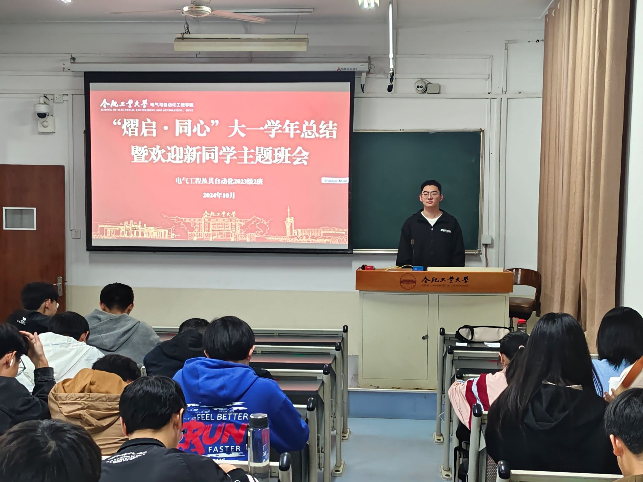 为使班级同学全面了解班级,清晰自身定位,激发前行动力,10月29日晚,电气与自动化工程学院于主教224教室开展“熠起·同心”学年总结暨欢迎新生主题班会,电气工程及其自动化2023级2班班主任陈强以及全体同学参加活动。