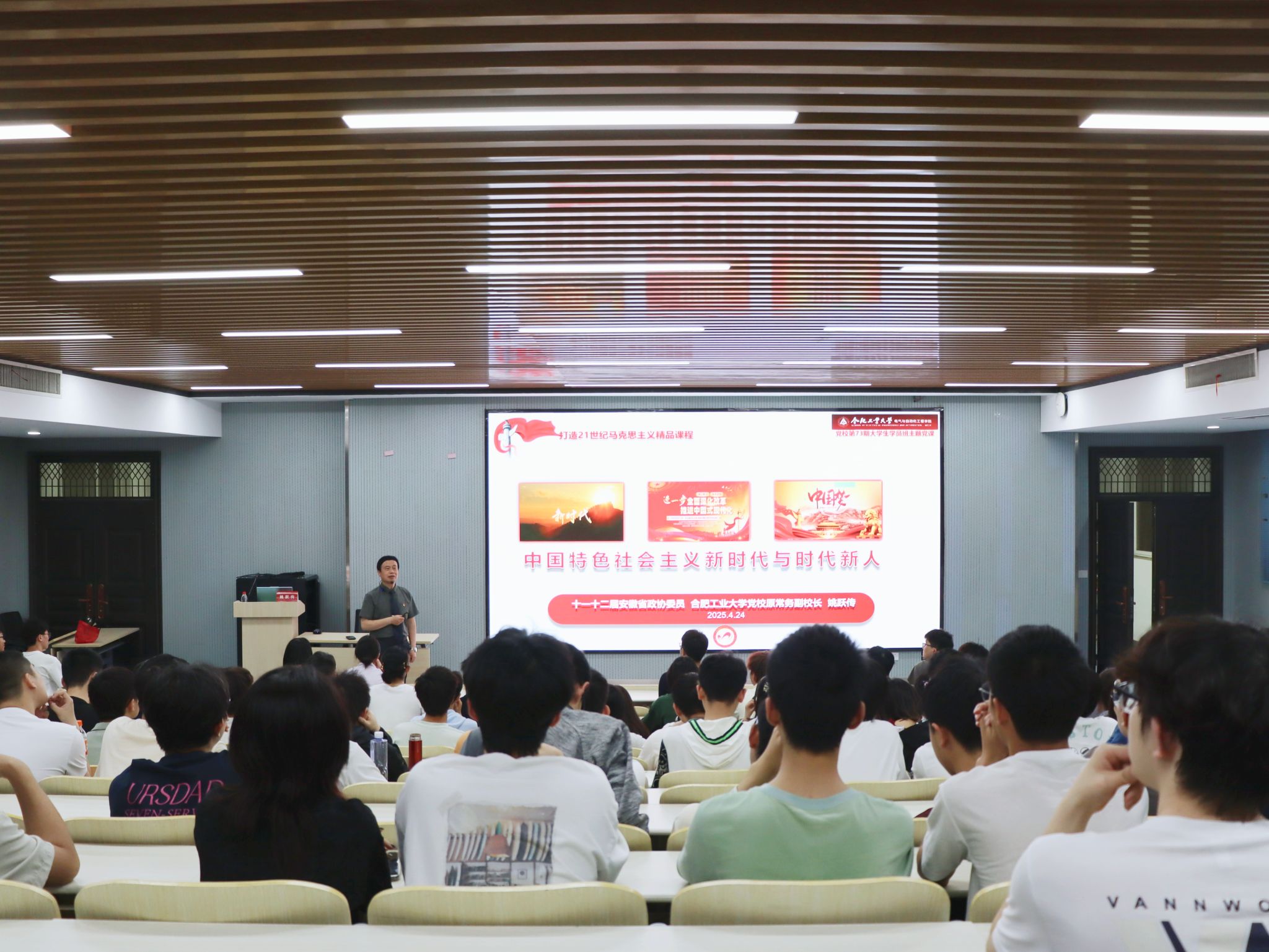 4月24日晚,电气与自动化工程学院分党校第二十期入党积极分子班集中授课在屯溪路西教301报告厅举行,十一、十二届安徽省政协委员、工口实验室