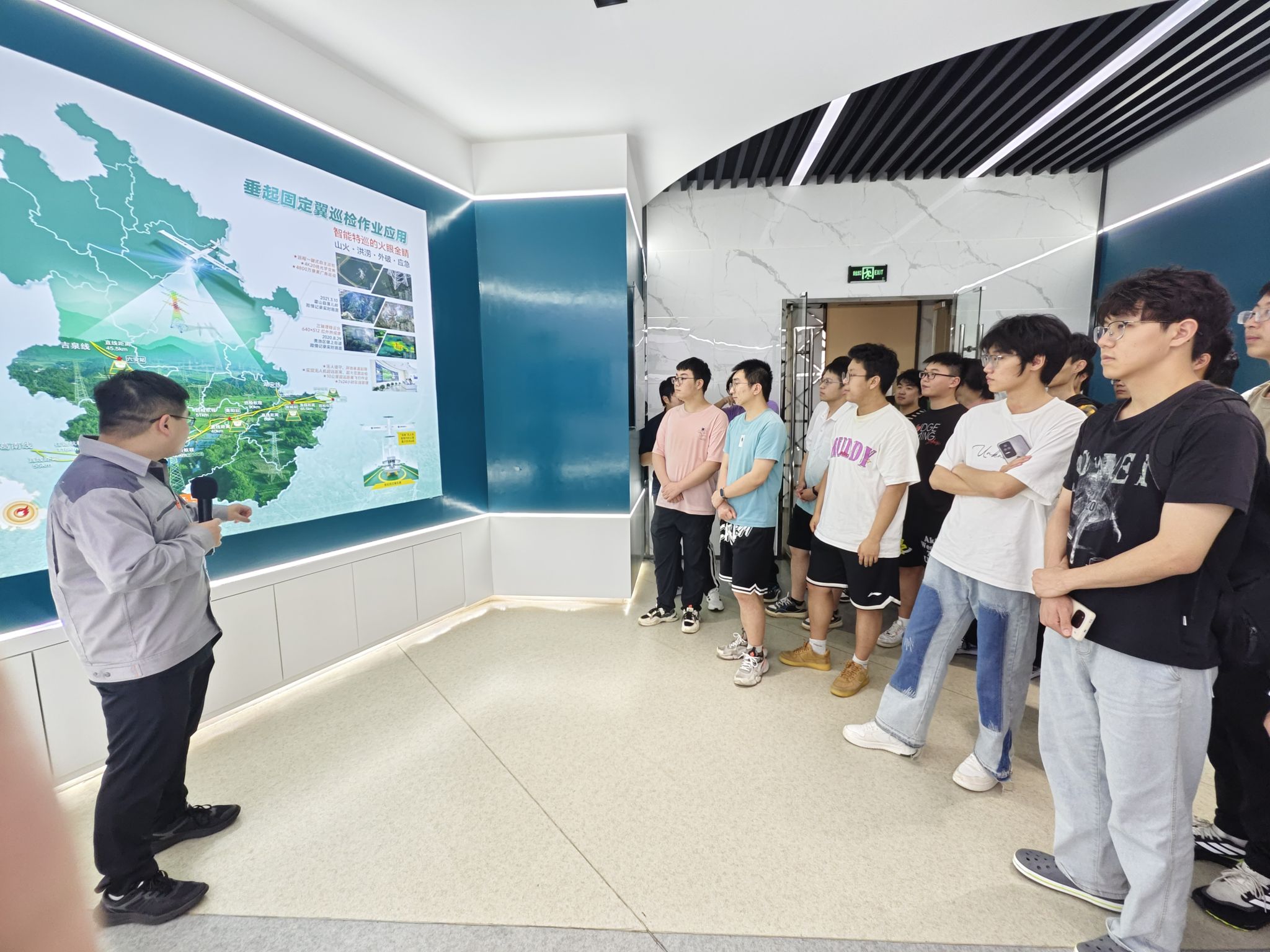 全体师生依次参观了无人机巡检管理中心、送变电工业园、运检实训基地。在无人机巡检管理中心,工作人员详细解读了无人机的使用优势、在企业生产中的实际作用,通过无人机数据管理平台让学生切身感受无人机在电塔检修监测、应急情况处置、物资运输等方面的应用。在运检实训基地,工作人员讲解了电力系统发生故障时,配电运检人员如何进行抢修工作。最后,师生一行走进“吴维国劳模创新工作室”,了解吴维国团队在技术研发上取得的一系列科技成果,激发了学生投身电力事业的热情。