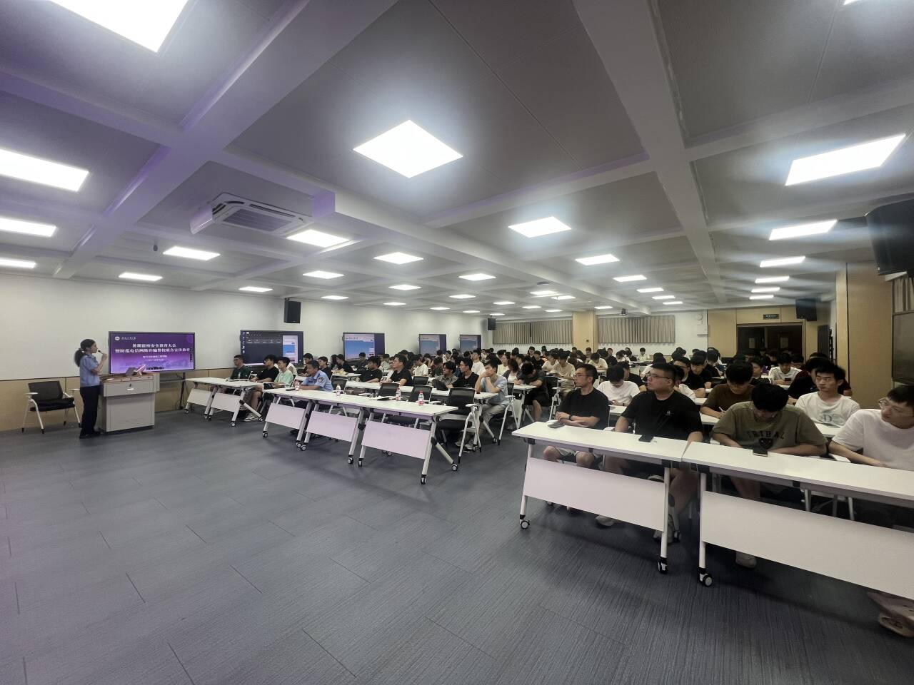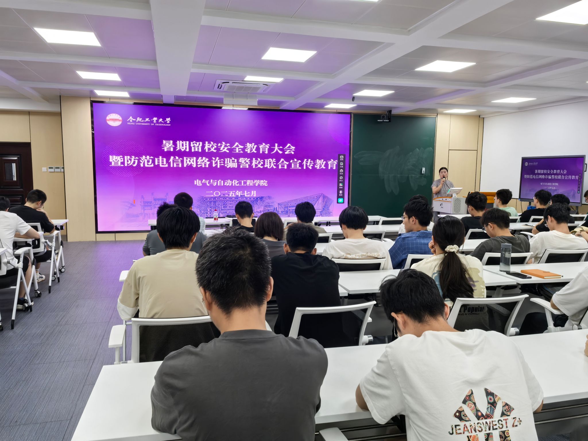 7月17日下午,电气与自动化工程学院在逸夫楼1005会议室召开暑期留校学生安全教育大会暨防范电信网络诈骗警校联合宣传教育,近200名留校学生骨干参会。