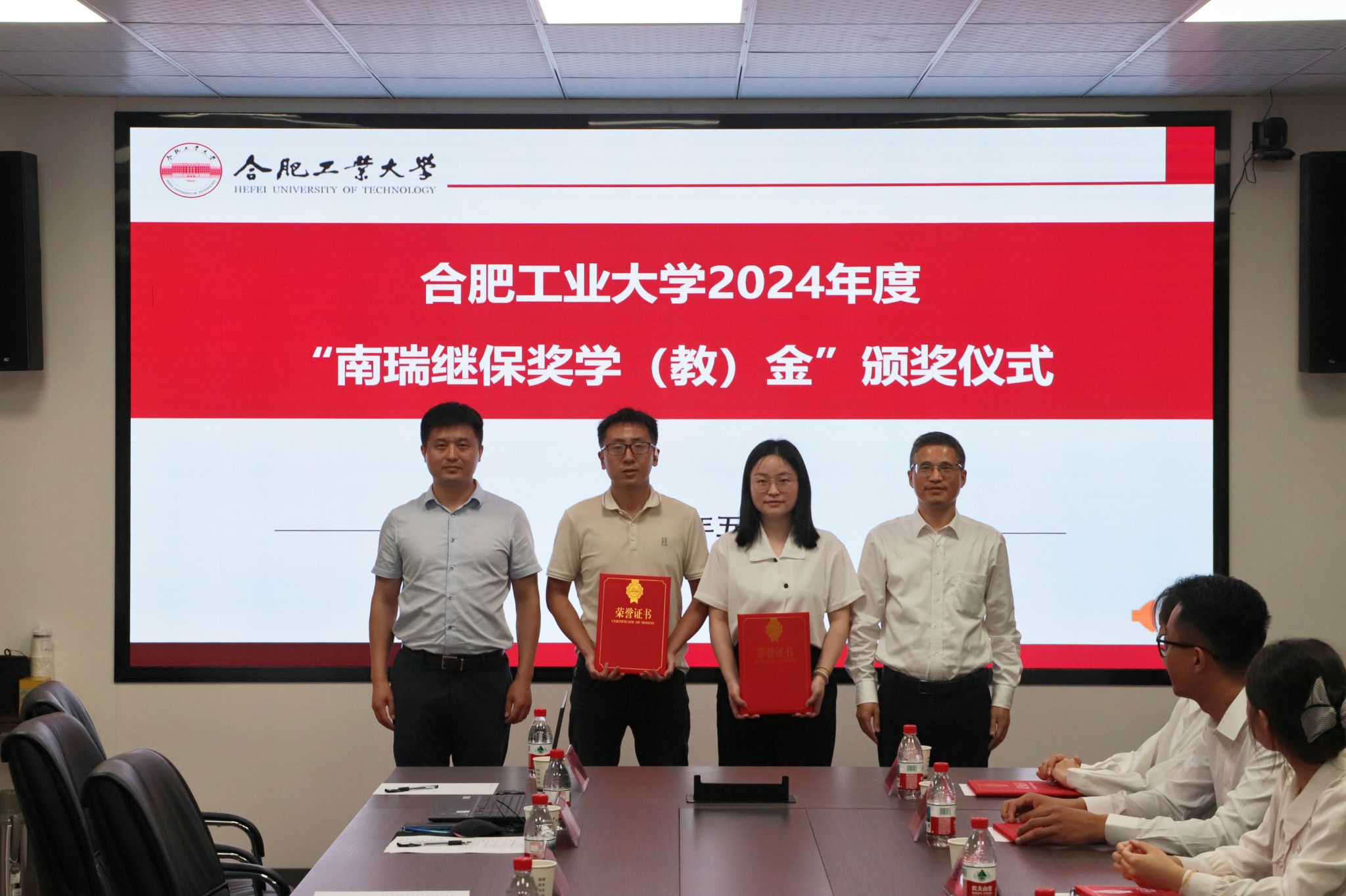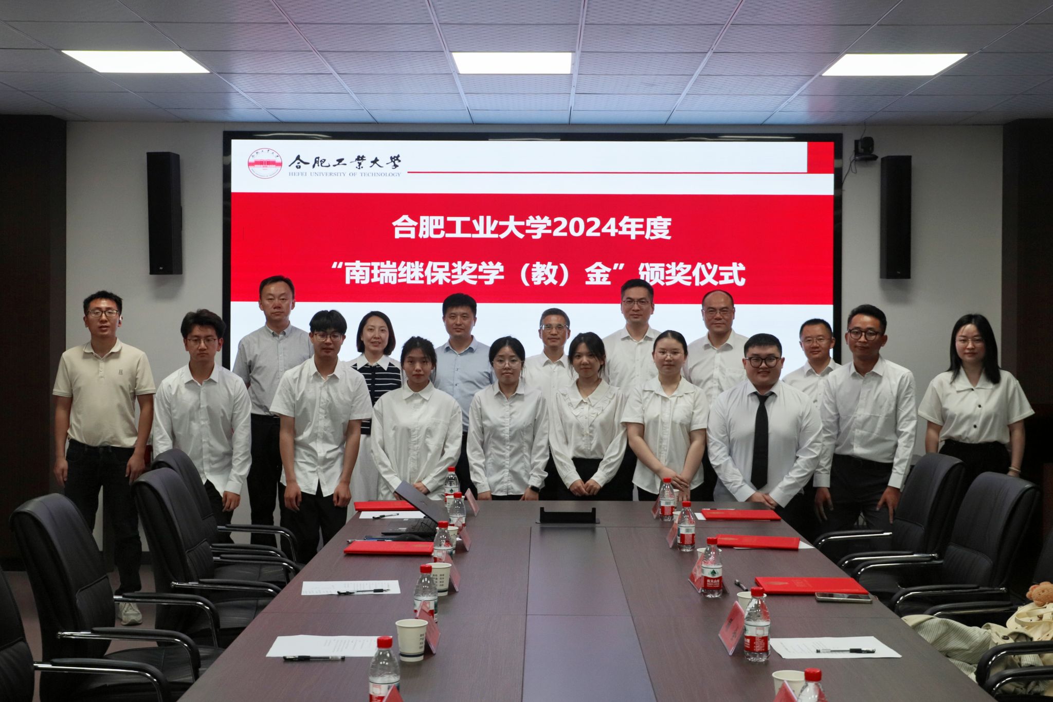 关于表彰2024年度“南瑞继保奖学(教)金”获得者的决定》。2021级本科生丁兴代表获奖学生发言。与会领导老师为11名获奖师生颁奖并合影留念。