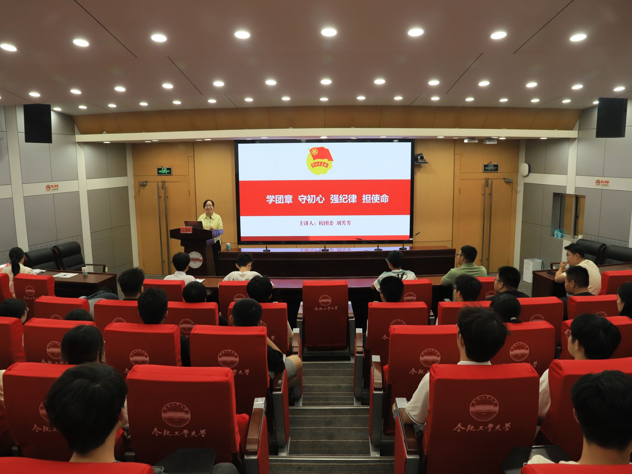 开班仪式后,刘芳芳为全体学员讲授“学团章、守初心、强纪律、担使命”主题团课,围绕团章的总则和十个章节用六个关键词介绍了共青团的组织性质,以五大模范鼓励学员们用初心砥砺信仰、用理论坚定信念、用实践增强信心。