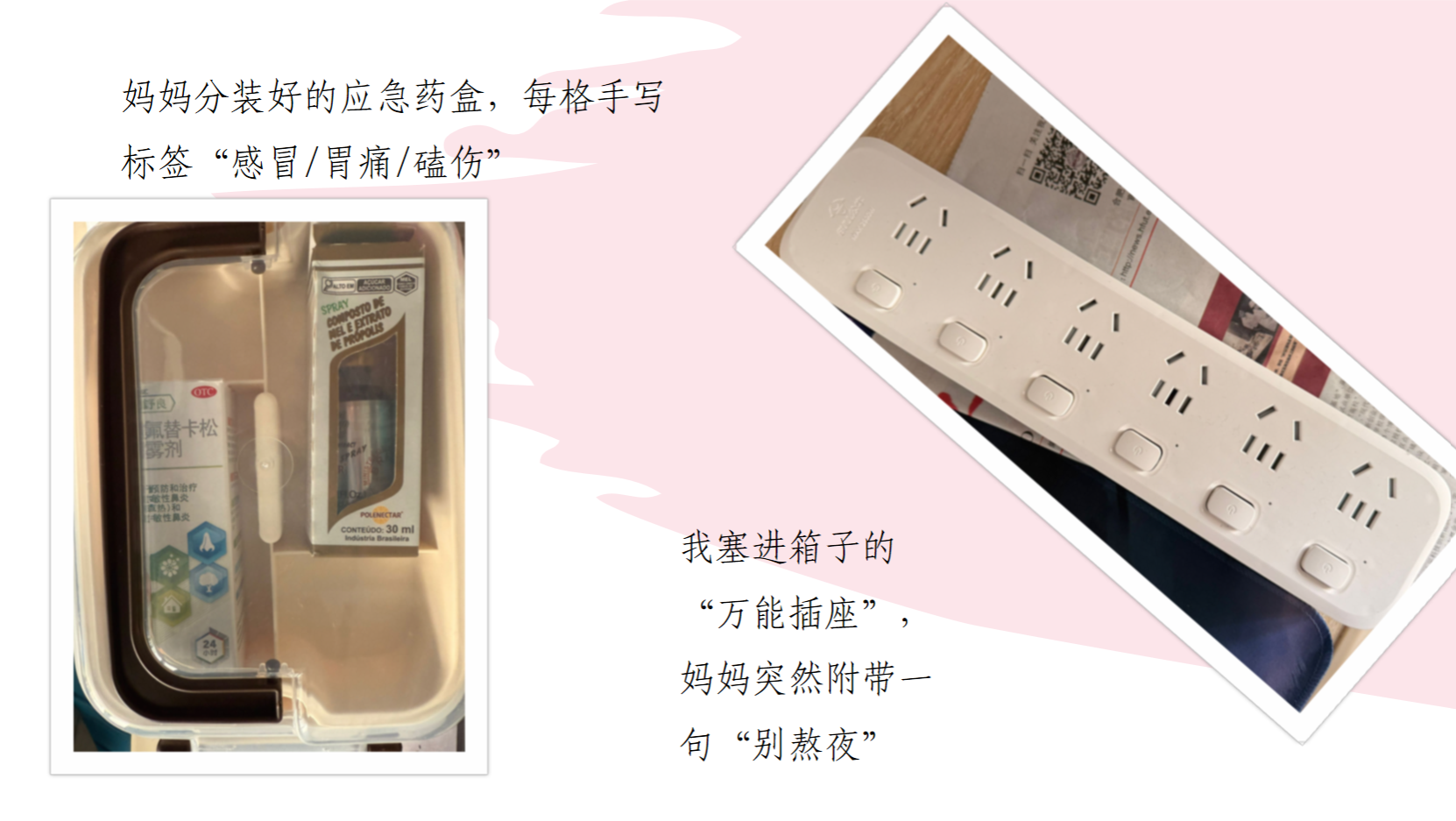 同学们在书信中回忆起在高三备考时父母深夜递上的一杯热牛奶,在照片里定格下那张陪伴过迷茫与焦虑的家乡老街,在画作旁写下“我感谢她,因为她是最最年轻可爱的妈妈”。这些作品或质朴,或巧思,都饱含真情的表达出对父母和师长的感谢,不仅是对过往温情的回应,也是新生们开启大学生活的心情守护和纪念。