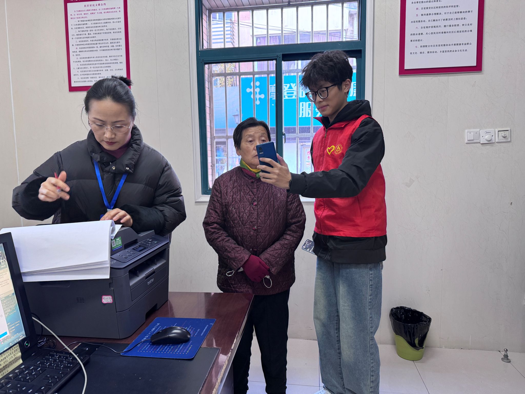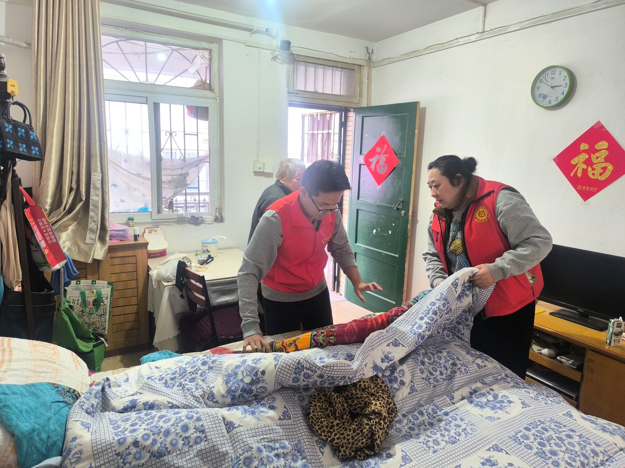 阳光志愿服务中心志愿者深入社区多站点开展敬老便民活动,以实际行动践行雷锋精神。在桐江小区,志愿者协同社区工作人员排查电动车违规停放、飞线充电隐患,逐户细致核查。通过安全科普强化居民防范意识,切实筑牢社区安全屏障。在曙宏新村中,志愿者入户关切老人身体状况,主动帮忙收拾被褥、整理床铺,用贴心服务传递暖意。在便民服务中心,志愿者协助社区整理住户资料、核查登记信息,有效缓解社区工作压力。