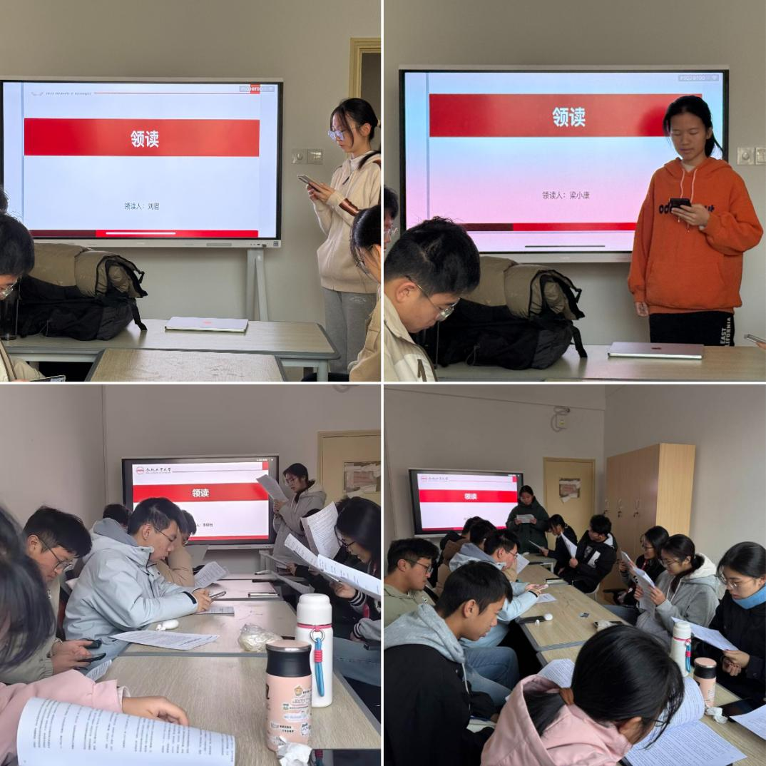 以“晨读”践行,在持之以恒中锤炼奋斗本领。11月-12月,学院在翡翠湖校区每周定期开展“牢记殷切嘱托,熠燃青春华章”主题晨读活动。活动以《习近平与大学生朋友们》系列篇目为核心学习素材,构建“领学原文+专题研讨+分享感悟”三位一体的学习模式,引领青年学生沉浸式研读中习近平总书记与大学生交流交心的故事,深刻领悟习近平总书记的殷切嘱托。学生骨干率先垂范,带动广大同学围绕专业学习、科技创新、社会服务等方面展开深入交流。大家纷纷表示,主题晨读活动深化了对新时代青年使命担当的理解与认同,进一步激发了将个人发展融入国家发展的思想自觉和行动自觉。
