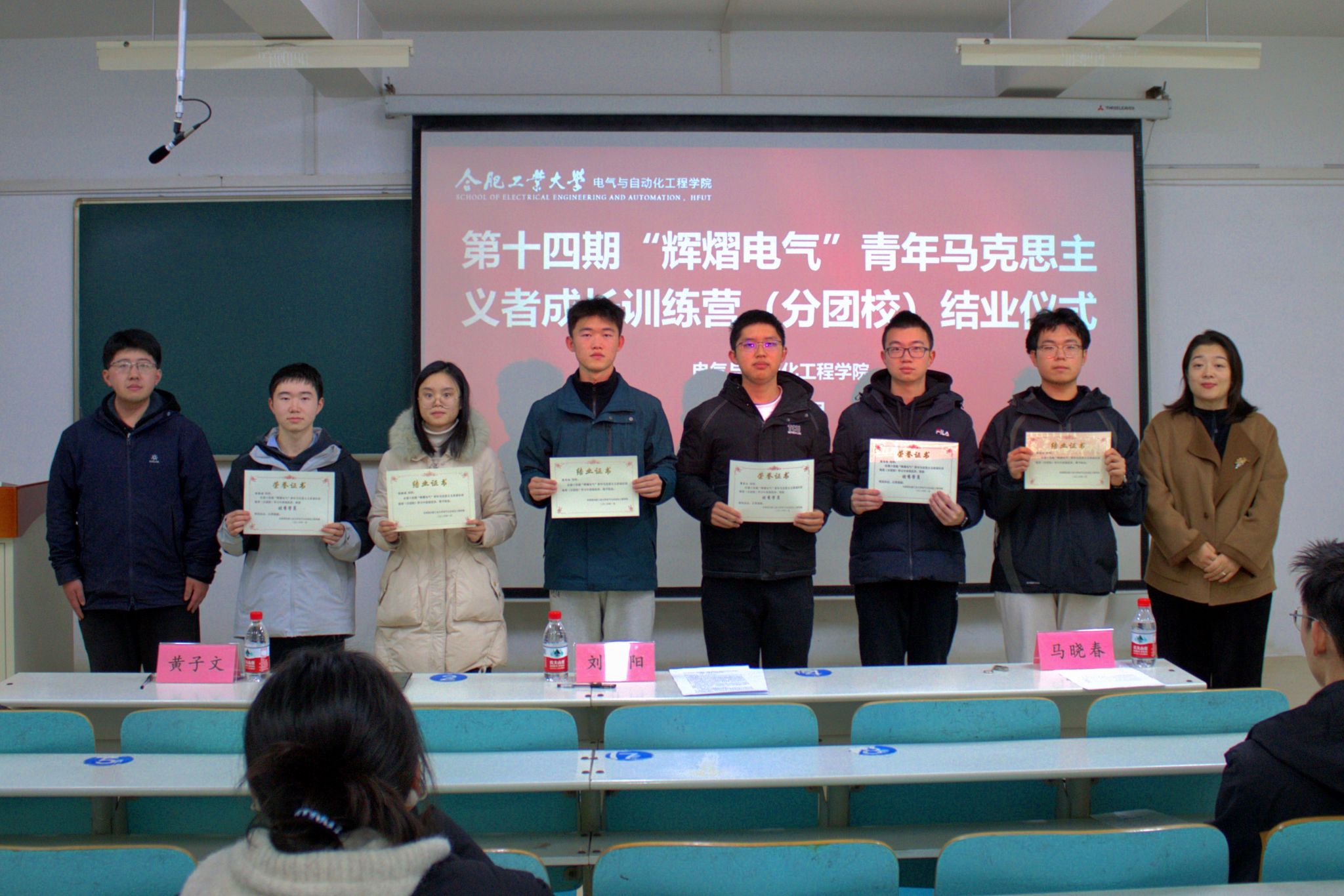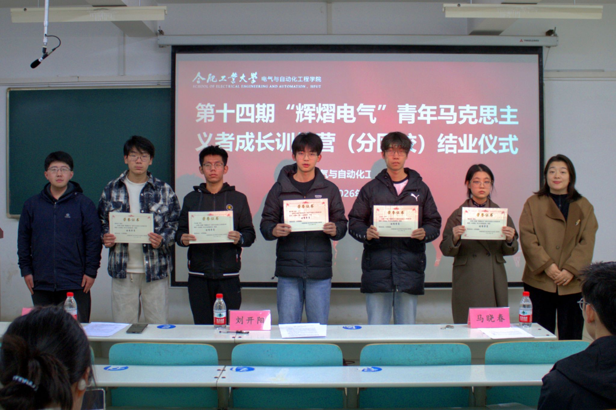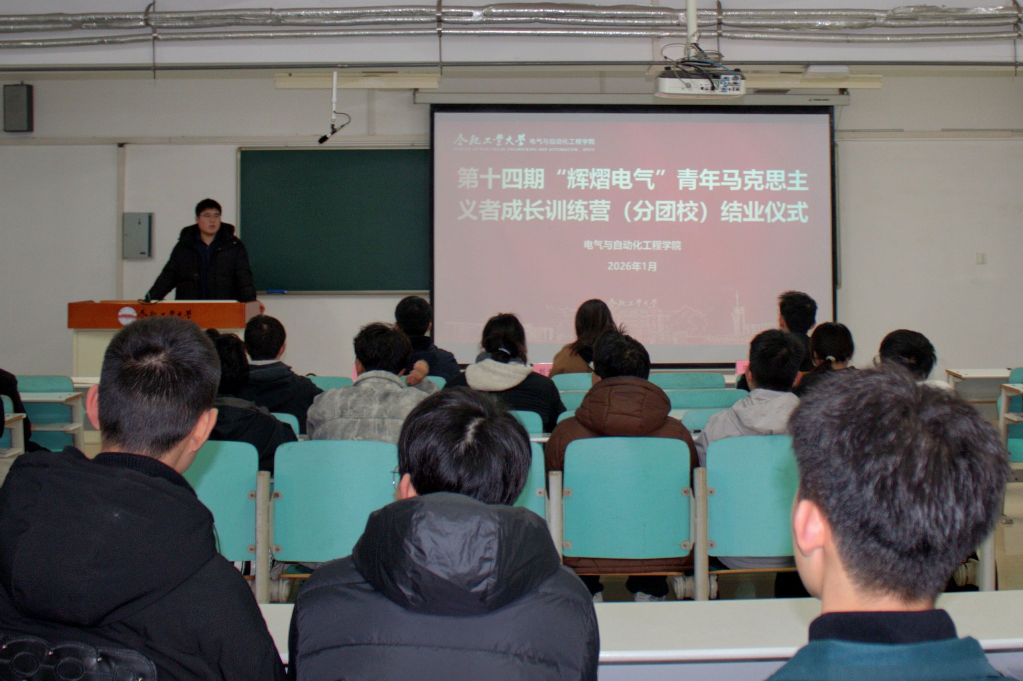 仪式在中国共产主义青年团团歌中拉开帷幕。刘开阳宣读了《关于同意电气与自动化工程学院第十四期“辉熠电气”青年马克思主义者成长训练营(分团校)学员结业与优秀学员表彰的决定》。2025级电气工程及其自动化专业韩佳彤同学作为学员代表发言。本期训练营共计61名学员顺利结业,胡浩轩等12名同学获评“优秀学员”荣誉称号,与会领导老师为优秀学员颁奖并合影留念。