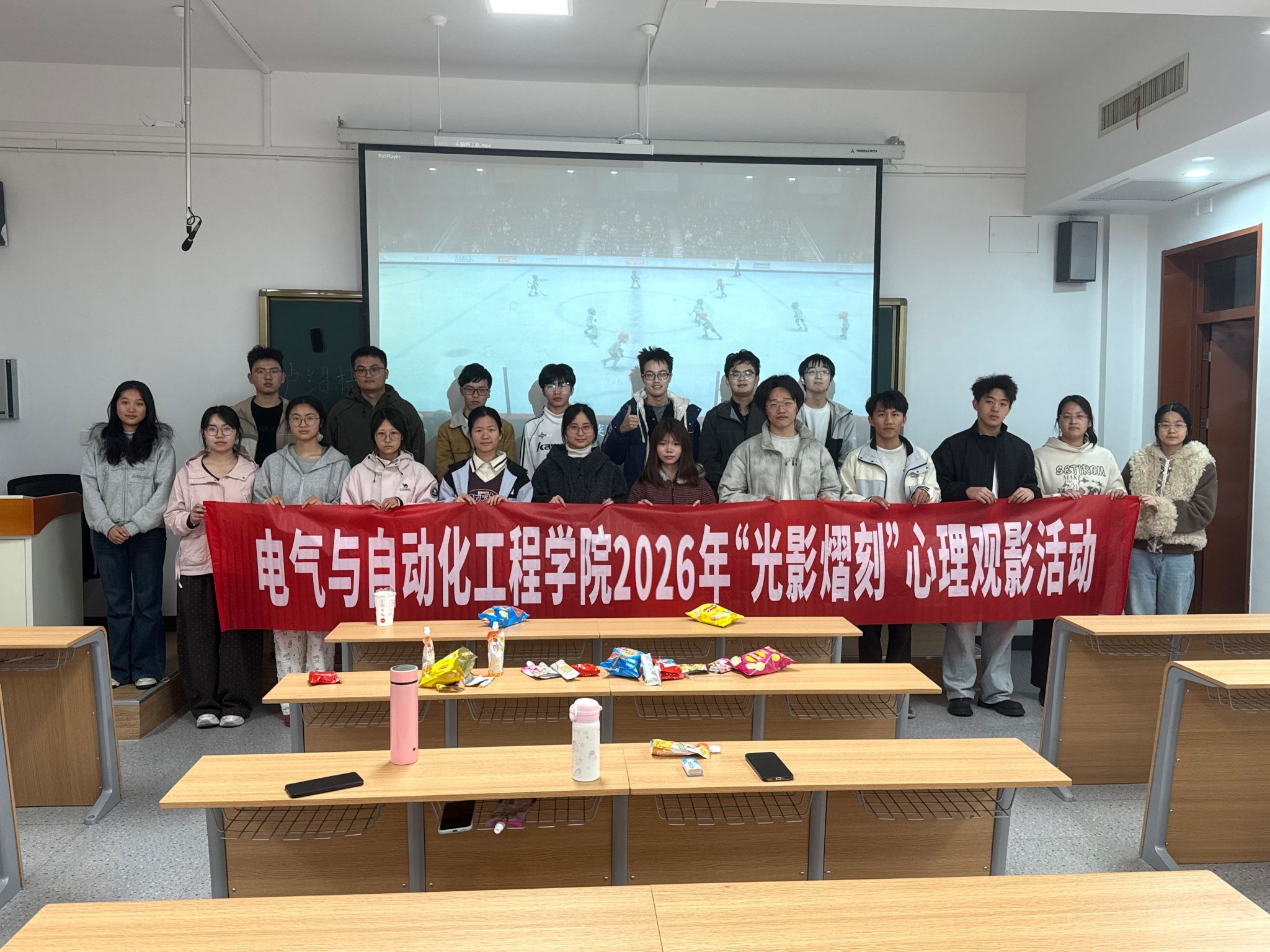为帮助同学们正确认识情绪、提升情绪管理能力。3月14日晚上,电气与自动化工程学院于翡翠湖校区的翠十教201开展“光影熠刻”心理观影活动,同学们都积极参与。