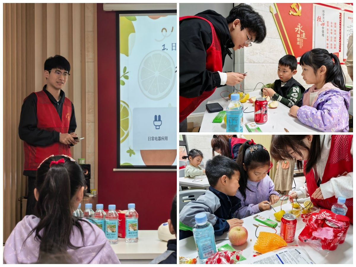 为践行志愿服务精神、发挥专业学科优势,4月11日上午,电气与自动化工程学院赴合肥市淝河镇席井村党群服务站,开展“果力发电 科创启智”社区儿童科普实验活动。