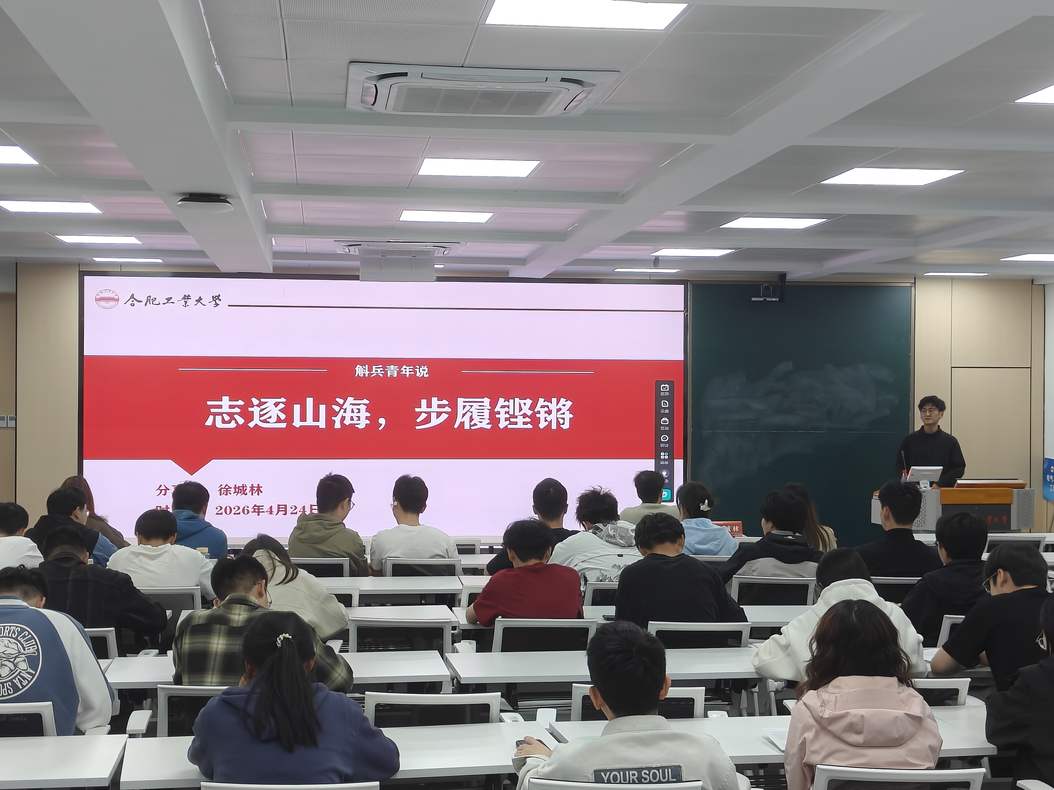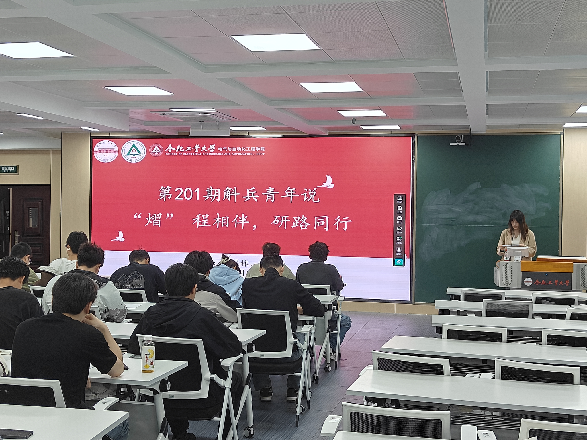 第201期斛兵青年说活动在屯溪路校区逸夫楼1005顺利举办。本次活动由党委学生工作部、校团委主办,校研究生会与电气与自动化工程学院研究生会承办。活动以“熠程相伴,研路同行”为主题,邀请学院2023级电气工程专业徐城林、2024级控制工程专业熊新华学长作交流分享,吸引60余名研究生积极参与。